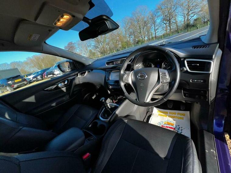 This Nissan Qashqai DIG-T Tekna is a remarkable find with exceptionally low mileage for its age, having covered just 67, 000 miles. As a Euro 6 compliant model, it features a 1.6 litre petrol engine and comes equipped with the desirable Tekna trim. You'll appreciate the spacious feel provided by the panoramic glass roof, which includes a fixed panoramic sunroof. For convenience and safety, this Qashqai boasts Bluetooth integration for seamless phone connectivity, an Around View Monitor offering a 360 bird's eye view for effortless parking, front parking sensors, and automatic headlights that adjust to ambient light conditions.