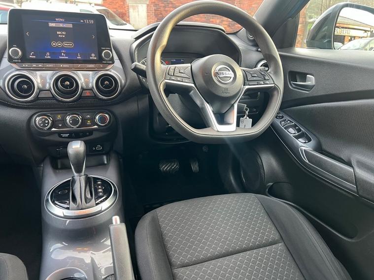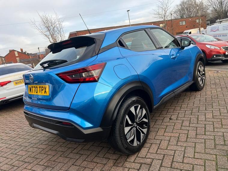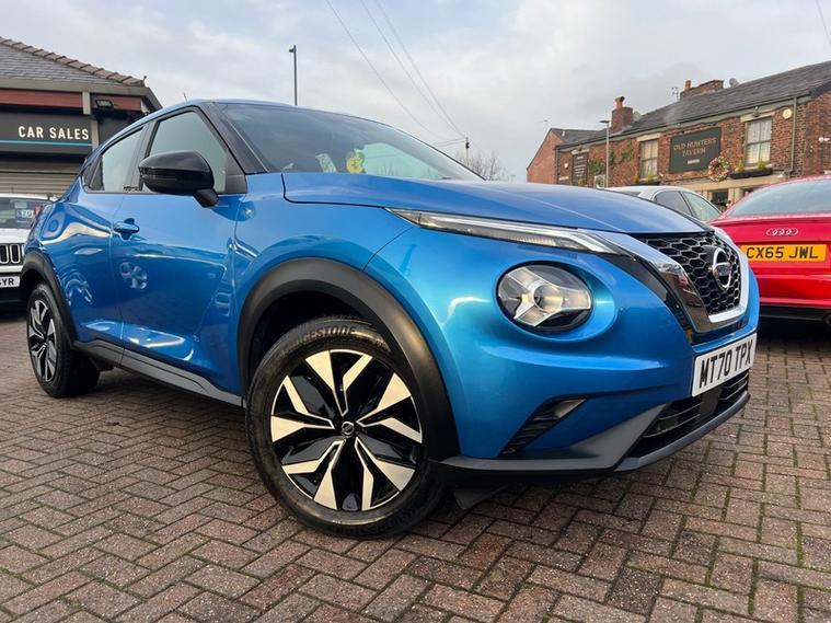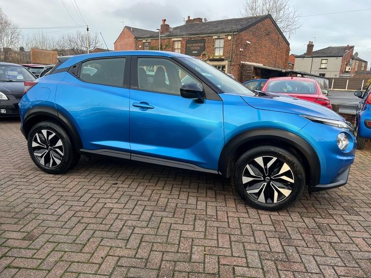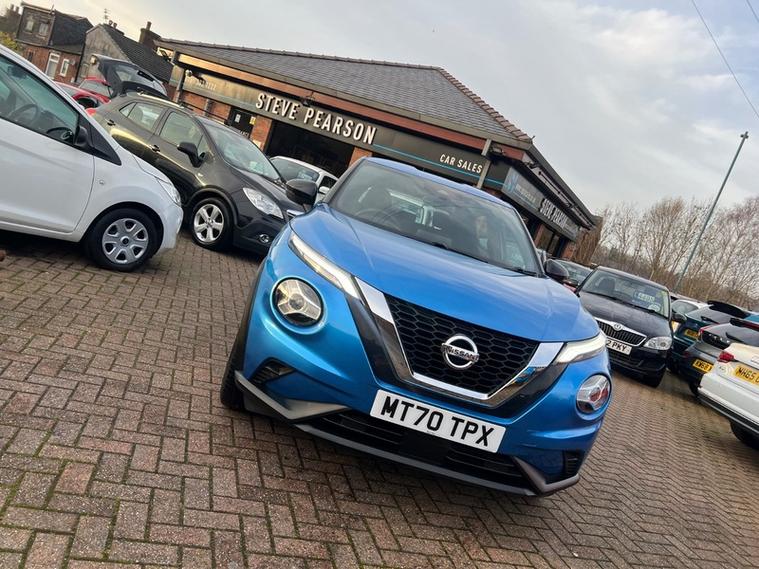 Steve Pearson Car Sales are Pleased to Present this Low Mileage Nissan Juke 1.2 DIG-T Acenta Automatic in a stunning Ink Blue Metallic with Full Service History. High Nissan refinements include.... ABS, Air conditioning, Media System , Reverse Camera Multi Function Steering Wheel , central locking, climate control, electric windows/mirrors, electric folding mirrors, power steering, adjustable steering, 12v power socket, USB/AUX input, Bluetooth, brake assist, cup holders, front airbags, ISOFix anchor point, keyless door locks, , DAB radio, , touch screen media system, side impact airbags, speakers, speed limiter, start stop system, steering wheel controls, traction control etc.....Looks and Drives Superb. Car comes with 2 keys, professionally valeted and fully HPI checked. We welcome Part Exchange and can offer Great Finance Deals, Please take a look at our virtual showroom at dealer's website where we have over 50 cars in stock, for more information please telephone or pop in for a cup of tea! Our showroom and floodlit forecourt are open 7 days a week, Tameside's Finest Collection of Low Mileage Quality Cars.