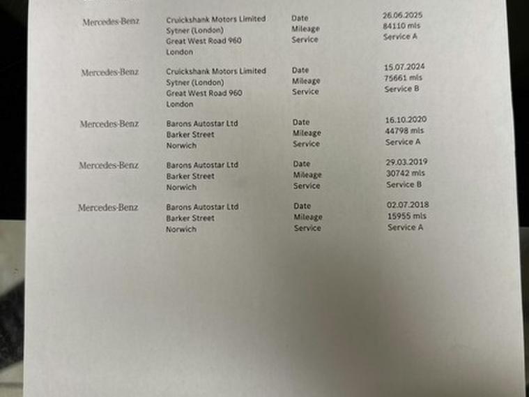 This car comes with 5 seats, White, 2 owners, 17in Alloy Wheels - 5 Twin-Spoke Design Painted in Himalayas Grey, 7in Colour Display - High-Resolution, ABS - Anti-Lock Braking System, AIRMATIC Dynamic Handling Package, ATTENTION Assist, Active Bonnet - Pedestrian Safety which Detects an Impact and Raises Bonnet, Active Parking Assist including PARKTRONIC, Adaptive Brake Lamps, Adaptive Brake with Hold Function - Hill Start Assist - Brake Drying, Airbags - Dual Stage - Driver and Front Passenger, Airbags - Front Sidebags, Airbags - Pelvisbag, Alarm System with Immobiliser and Interior Protection, Audio 20 CD, Automatic Child Seat Recognition Sensor, Automatically Dimming Rear View Mirror and Drivers Door Mirror, Bluetooth Interface for Hands-Free Telephone, Central Locking with Interior Switch - Automatic Locking and Crash Sensor with Emergency Opening Function, Charging Cable for Household Socket - Mode 2 - 4m-8A, Charging Cable for Wallbox and Public Charging Stations - Mode 3 - 16 A - 4m, Childproof Locks - Manually Operated for Rear Doors and Electrically Operated for Rear Power Windows, Collision Prevention Assist Plus, DAB Digital Radio Tuner, Drivers Kneebag, Dynamic Select with a Choice of Driving Modes - Comfort - ECO - Sport - Sport Plus - Individual, ESP - Electronic Stability Programme, Electric Parking Brake, Electric Windows - 4 - With One-Touch Opening and Closing - including Obstruction Sensors, Electronic Key - Chrome Surround, Exhaust System - Visible Twin-Pipe Integrated into the Bumper, First Aid Kit and Warning Triangle, Front Centre Armrest with Stowage Compartment, Front Door Sills with Mercedes-Benz Lettering, Front Seats - Electrical Height and Backrest Adjustment and Four-Way Lumbar Adjustment, Fuel Computer, Full LED Tail Lights, Garmin Map Pilot Navigation System, Gearshift Paddle on Steering Wheel, Headlamps - LED High Performance with Integrated LED Daytime Running Lights, Heated Front Seats, Heated Windscreen Washer System, ISOFIX Child Seat Attachment Points with Top Tether in Rear, Illuminated Glove Compartment, Instrument Cluster with Two Tube-Design Round Dials and 5.5in TFT Multi-Function Display, Interior Lighting Package, Mercedes Connect Me - Standard Services, Mercedes Me Connect - Remote Online, Mirror Package, Outside Temperature Display, Power Steering - Direct-Steering Speed Sensitive, Pre-Wiring for Garmin Map Pilot Navigation System, Radiator Grille with Integrated Star - Two Louvres in Matt Iridium Silver with Chrome Trim, Radio Aerial Integrated into Rear Window, Rain Sensing Windscreen Wipers, Remote Boot Release, Reversing Camera, SPEEDTRONIC Cruise Control and Variable Speed Limiter, Seat Belts - Black, Seat Comfort Package, Seats - Rear Split Folding 40-20-40, Seats - Sports, Service Indicator ASSYST, Speakers with FrontBass, Status Display for Rear Seat Belts in Instrument Cluster, Steering Column - Manually Adjustable for Height and Reach, Steering Wheel - 3-Spoke Multi-Function in Leather with Trim in Silver Chrome and Perforated Leather in Grip Area, Steering Wheel - Multi-Function with Audio and Onboard Settings Control, Stowage - Double Cup Holder in Centre Console, Stowage Package, Sun Visors with Illuminated Vanity Mirrors, THERMATIC - Automatic Climate Control - Two-Zone, TIREFIT with Tyre Inflation Compressor, Tinted Glass All Round - Green, Top Surround of Side Windows in Polished Aluminium, Trim - High-Gloss Black with Aluminium Door Trims, Two USB Ports and an SD Card Slot in Centre Console, Tyre Pressure Monitoring System, Windowbags for Driver-Front Passenger and Rear Passengers,