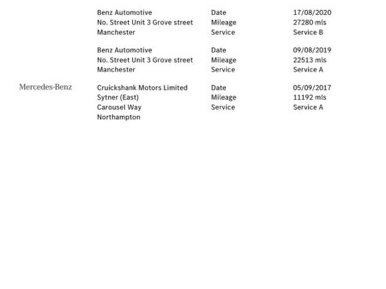 This car comes with 5 seats, Black, 3 owners, 17in Alloy Wheels - 5-Twin-Spoke Design, 8-inch Tablet-Style Colour Display, ABS - Anti-Lock Braking System, ASR - Acceleration Skid Control, ATTENTION Assist, Active Bonnet - Pedestrian Safety Measure which Detects an Impact and Raises Bonnet by 65mm, Active Park Assist with Parktronic, Adaptive Brake Assist with Hold Function and Hill Start Assist, Adaptive Brake Lights, Air Vents with Black Surround - Petrol Green Insert and Cruciform Nozzle, Airbag - Drivers Knee, Airbag - Dual-Stage - Front Passenger, Airbags - Dual-Stage - Driver, Airbags - Head for Driver and Front Passenger, Airbags - Windowbags for Driver and Front Passenger, Alarm System with Interior Protection, Ambient Lighting - 12 Colours, Audio 20 Radio-CD-MP3 Compatibility, Auto Dimming Rear View Mirror, Automatic Child Seat Recognition Sensor, BAS - Brake Assist, Beltline Strips - Chrome, Bluetooth, Brake-Pad Wear Warning Indicator, Bumpers - Body-Coloured, Centre Armrest - Front with Storage, Childproof Locks - Manually Operated for Rear Doors and Electrically Operated for Rear Power Windows, Collision Prevention Assist Plus, Controller on Centre Console with Chrome Surround, Crash Sensor with Emergency Opening Function for Doors, Crash-Responsive Emergency Lighting, Cruise Control with SPEEDTRONIC Variable Speed Limiter, Cup Holder - Twin, Direct Select Gearshift Lever, Door Handles - Body-Coloured, Door Mirrors - Body Coloured, Door Mirrors - Drivers Automatically Dimming, Door Mirrors - Electrically Folding, Door Mirrors - Integrated LED Indicators, Door Sill Panels - Mercedes-Benz Lettering - Illuminated, Dynamic Select with a Choice of Driving Modes - ECO-Comfort-Sport and Individual, ESP - Electronic Stability Programme, ESP Cornering Dynamics Assist, Electric Parking Brake, Electronic Key - Chrome Surround, Exhaust System - Twin Trapezoidal Tailpipes in Polished Stainless Steel, First Aid Kit, Fluid Level Warning Indicator for Fuel - Oil - Coolant and Washer Fluid, Footwell Lighting - Front and Rear, Glove Compartment - Illuminated, Head Restraints - Manually Adjustable - Front and Rear, Headlight Assist - Automatic Headlight Activation, Headlights - Halogen, Headlights - High Beam Assist, Headlights - Integrated Daytime Running Lights, Headlights - LED, Heated Rear Window with Timer Control, High Level Third Brake Light - LED, ISOFIX and Top-Tether Child Seat Fixing Points in Rear - Two Outer Seats, Illuminated Storage Compartment in Centre Console, Illuminated Vanity Mirrors, Immobiliser, Indicators - Lane Change Function, Instrument Cluster with 4 Analogue Dials and Needles Suspended in Six-o-Clock Position, Light Failure Indicator, Load-Securing Rings in Luggage Compartment, Luggage Compartment Cover, Media Interface, Mercedes Me Connect, Outside Temperature Gauge, Parking Sensor - Front, Parking Sensor - Rear, Power Steering - Speed-Sensitive, Pre-Wiring for Garmin Map Pilot Navigation System, Premium Package, Radiator Grille - Diamond in Black with One Louvre Painted in Vehicle Colour and Chrome Insert, Radio Aerial Roof Spoiler, Rain-Sensing Windscreen Wipers, Reading Lights - Front and Rear, Rear Seats - Split Folding 1-3 - 2-3, Rear Windscreen Wiper, Remote Central Locking, Reversing Camera with Parking Guidelines - 180 Degree View, Roof Lining - Grey Fabric, SD Memory Card Slot, Satellite Navigation - Garmin Map Pilot, Seat Belt Reminder - Front and Rear, Seat Comfort Package, Seat Occupancy Sensor - Front Passenger Seat, Seats - Cushion Angle Adjustment for Front, Seats - Front Cushion Length Adjustment, Seats - Front Manually Adjustable, Seats - Heated Front, Seats - Height Adjusters, Service Indicator ASSYST, Side Skirts - Body-Coloured, Sidebags for Driver and Front Passenger, Speakers x6, Steering Column - Manually Adjustable for Height and Reach, Steering Wheel - 3-Spoke - Trimmed in Leather with Perforated Leather in Grip Area, Steering Wheel - Gear Shift Paddles, Steering Wheel - Multi-function, Storage Compartment Beneath Load Compartment Floor, Sun Visors with Illuminated Vanity Mirrors, Suspension - Comfort, TIREFIT Tyre-Sealant Kit, Tail Lights - Partial LED, Telephone Keypad, Thermotronic Automatic Climate Control - Two Zone, Trim - Chequered-Pattern Look, Trip Computer, Twin Radio Tuner - FM-AM, Tyre Pressure Monitoring System, USB Ports in Centre Console x2, Voice Control, Warning Triangle, Windows - Electric x4, eCall - Emergency Call System,