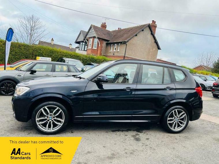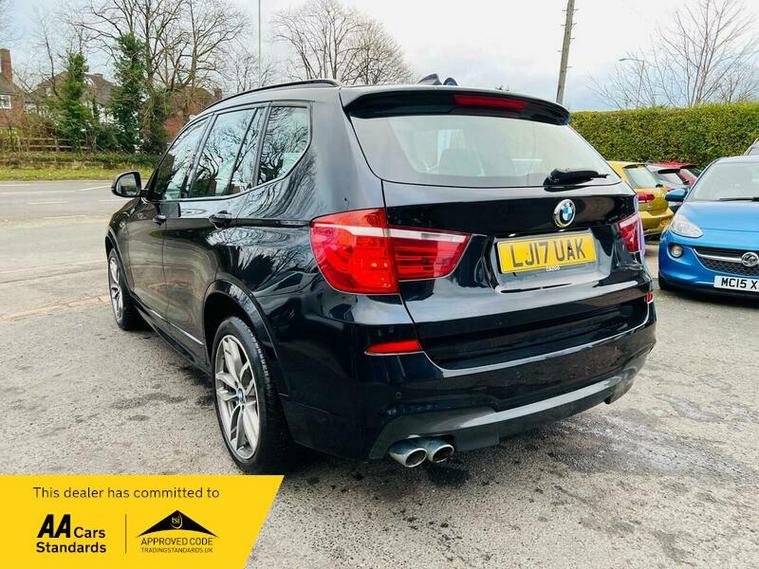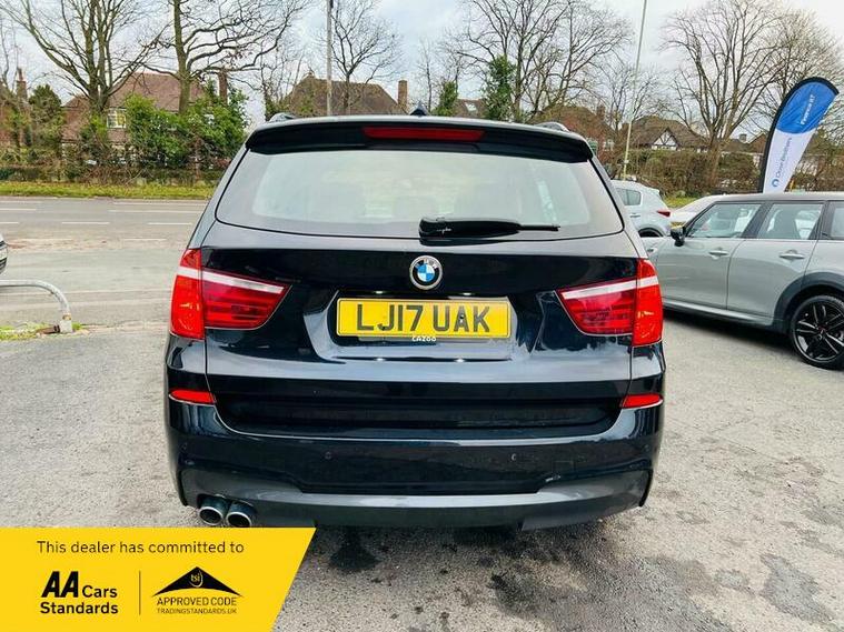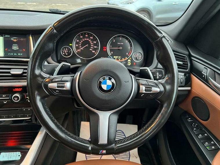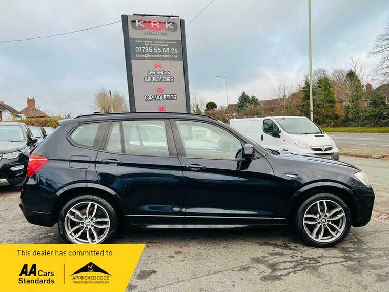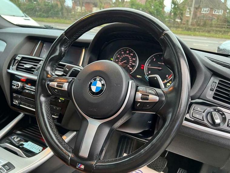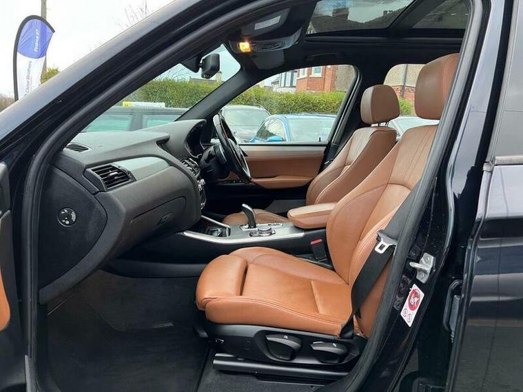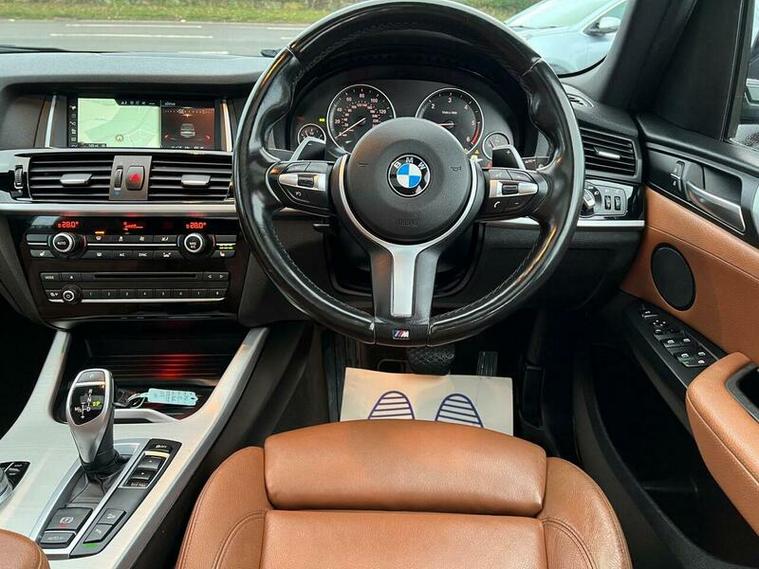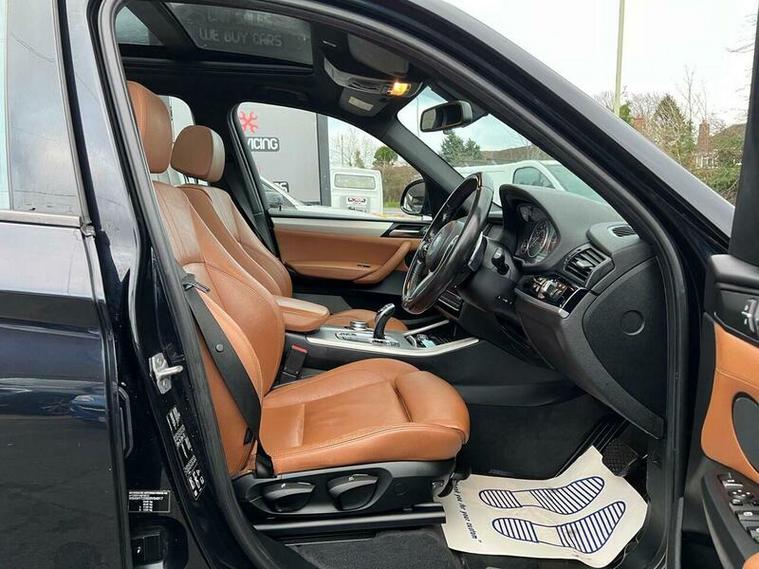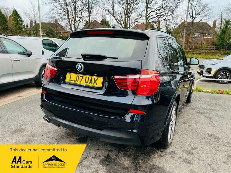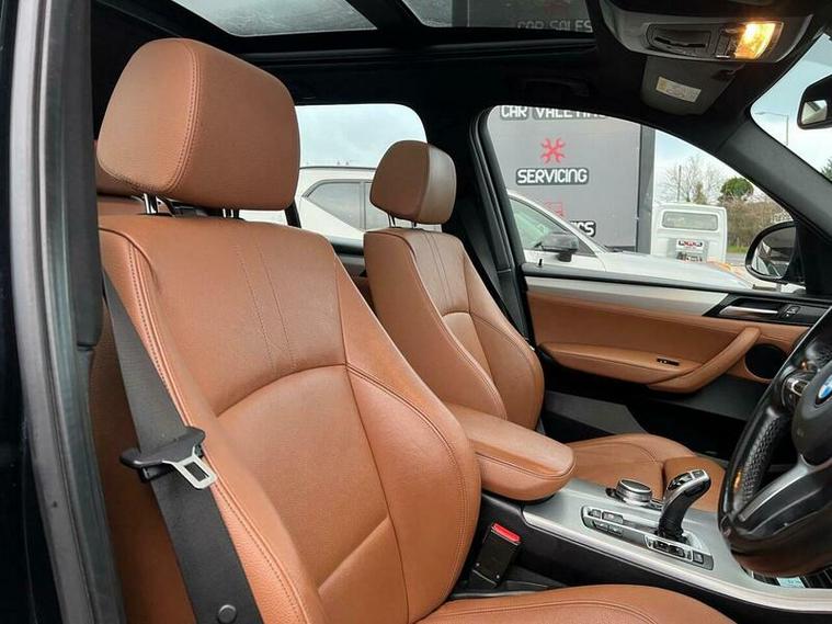 This 2017 BMW X3 35d M Sport is a superb example of a premium all wheel drive SUV. Powered by a potent 3.0 litre diesel engine, this Euro 6 compliant model offers impressive performance with a swift 0-62mph acceleration time of just 5.3 seconds. The M Sport trim level ensures a sporty aesthetic and driving experience, complemented by a spacious interior featuring a desirable panoramic glass sunroof that includes an opening function. For comfort and convenience, it boasts dual zone automatic air conditioning, front and rear park distance control for easier manoeuvring, and comprehensive Bluetooth connectivity for hands free calls and USB audio.