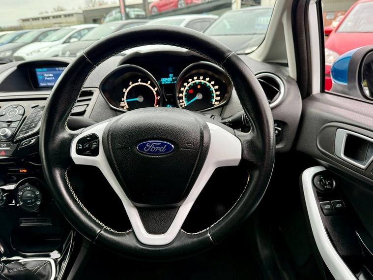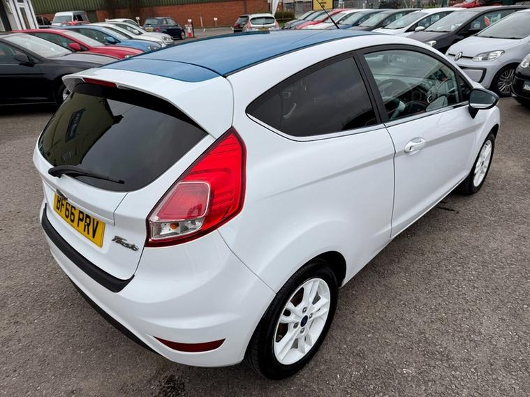 ABSOLUTE CARS have this 3 Door Ford Fiesta 1.25 Zetec White Edition Euro 6 in Solid White with Contrasting metallic Blue Roof & Door mirror Caps. Call in for a test drive, finance arranged & part exchange considered., 3 months warranty, Next MOT due 18/12/2026, Last serviced on 19/12/2025 at 62, 416 miles, Full service history, Grey Cloth interior, 5 seats, White, 3 owners, Upgrades - Spare Wheel - 14in Steel, Standard Features - 12V Power Socket - Front, 15in Alloy Wheels, ABS - Anti-lock Braking System, Air Conditioning - Manual, Airbags - Curtain, Airbags - Driver Side Knee, Airbags - Front Passenger, Airbags - Front Side, Airbags - Passenger Deactivation, Ambient Lighting, Bluetooth Hands-free Phone, Bumpers - Front and Rear - Body Colour, Centre Console - with Trinket Tray - Two Cup Holders, Chrome Belt Line Finisher, Courtesy Light - Front with Map Reading Lights, Courtesy Light - Overhead with Theatre-Style Dimming, Courtesy Light - Rear, Door Handles - Body Colour, Door Mirrors - Contrast Blue, Door Mirrors with Integrated Indicators, Double Locking, Drivers Airbag, EBA - Emergency Brake Assist, EBD - Electronic Brakeforce Distribution, ECOmode, EPAS - Electric Power Assisted Steering, ESP - Electronic Stability Programme, Electric Windows - Front with One Touch Opening and Closing, Emergency Assistance, Emergency Brake Warning - Automatic Hazard Warning Lights, Engine Immobiliser - Passive Anti-theft System, Footwell Lights - Driver and Passenger, Ford AM-FM CD Audio System, Ford DAB with Ford SYNC, Ford Easy Fuel Capless Refuelling System with Misfuel Inhibitor, Ford SYNC, Front Fog Lights - Chrome Bezel Rings, Front Lower Grille Insert - Black, Front Seat - Passengers Manual Fore-Aft Adjustment, Front Seatback Map Pockets - Driver and Passenger, Front Upper Grille - Chrome Finish Surround, Front Upper Grille Insert - Chrome bars, Gear Knob - Leather, Gear Shift Indicator, Glovebox - Illuminated, Head Restraints - 2-way Adjustment, Headlights - Courtesy Delay, Headlights - Halogen Projector with Silver Bezel, Headliner - Woven, Heated Front Windscreen, High-Mounted Rear Brake Light, Hill Start Assist, IPS - Intelligent Protection System, Interior Door Lever - Chrome Finish, LED Daytime Running Lights, Leather-Trimmed Handbrake, Loadspace Compartment Light, Loadspace Floor Carpet, Locking Wheel Nuts, MyKey, Pollen Filter, Power Fold Door Mirrors, Rake and Reach Steering Adjustable, Rear Privacy Glass, Rear Seats Back - Carpet, Rear Wash - Wipe, Remote Central Locking, Removable Package Tray, Roof - Contrast Blue, Seat Bolster - Metal Grey Stitching, Seats - 60-40 Split Folding Back and Fixed Cushion, Seats - Drivers Manual Height and Fore-Aft Adjustment, Seats - Front Comfort Style, Seats - ISOFIX Mounting Brackets for Child Seats, Speakers - x6, Steering Wheel - 3 Spoke - Leather Trimmed, Steering Wheel - Multifunction, Suspension - Front Stabiliser Bar, Tailgate Handle - Body Colour, Traction Control - TC, Trip Computer, Tyre Pressure Monitoring System, USB and AUX Connection for External Music Devices, Unique Accents on Steering Wheel - Door Handles and Gaiter Ring, Voice Control - Audio, Wipers - Front Variable Intermittent, AS WE ARE AN AA CARS DEALER THIS VEHICLE COMES WITH 12 MONTHS AA BREAKDOWN COVER.