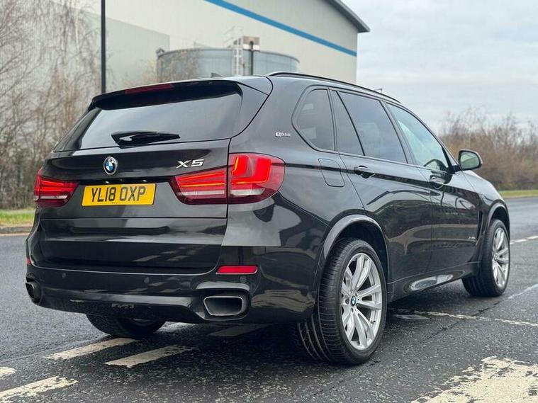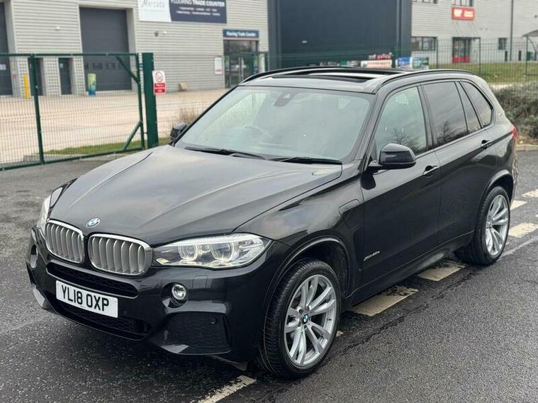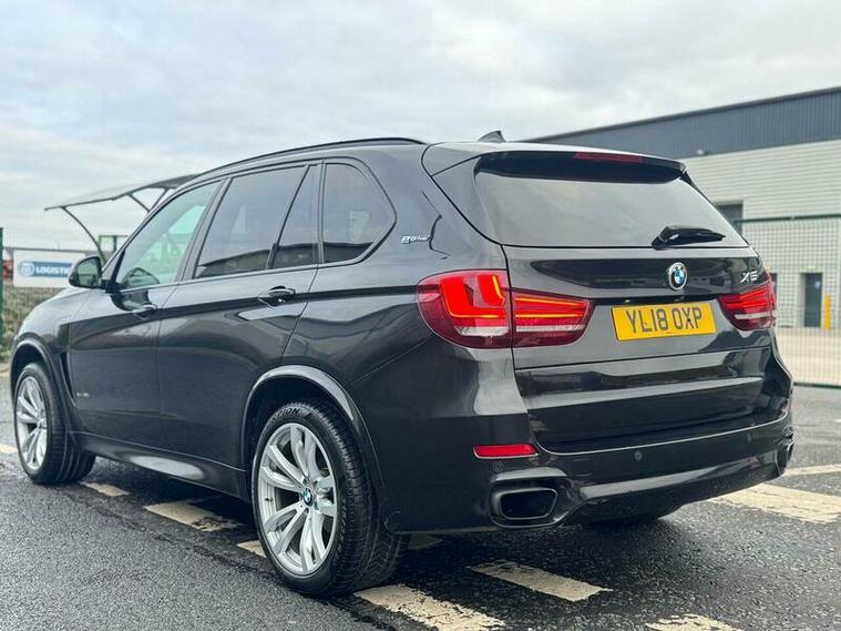 This 2018 BMW X5 40e M Sport offers a clear vehicle history, providing peace of mind for its next owner. This impressive plug in hybrid model combines a 2.0 litre petrol engine with electric power, delivering efficient performance through its four wheel drive system. It meets Euro 6 emissions standards and boasts a substantial towing weight of 2700 kg, making it a versatile choice. Inside, you'll find a spacious cabin featuring automatic two zone climate control, a rain sensor with automatic headlight activation, and a reversing assist camera to aid with parking. The striking 20 inch M Double Spoke alloy wheels and a panoramic glass sunroof, which can also be opened, add to its premium appeal.
