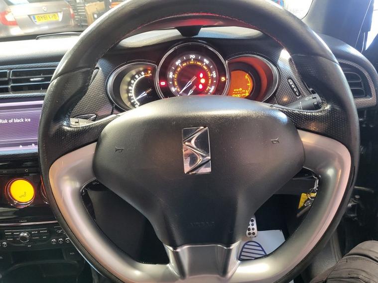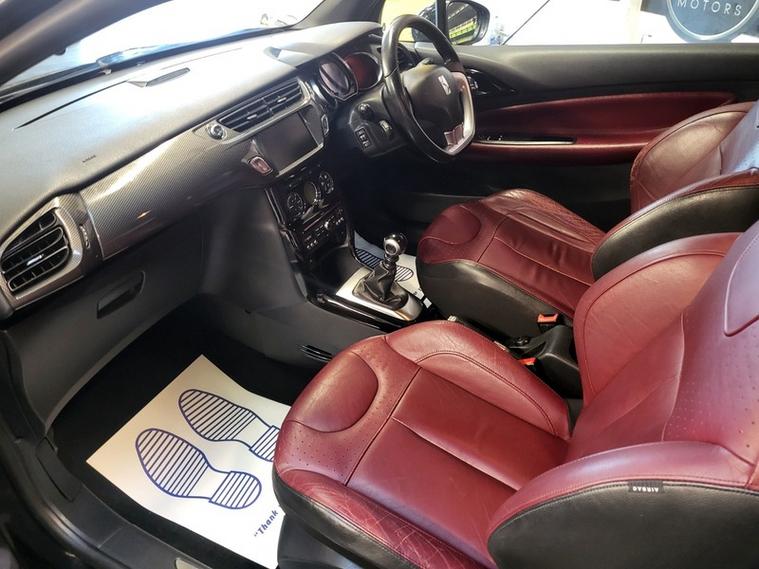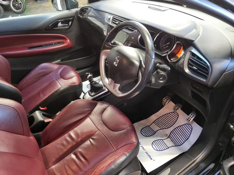 The Citroen DS3 Dsport 1.6 thp will come with Service history, Bookpack, 12 months MOT, 30 day warranty, 12 months breakdown cover. The Citroen DS3 Dsport has a great spec that includes Leather Seats, ABS brakes, Air conditioning, Alloy wheels, CD player, Central locking, Climate control, Electric windows, Power assisted steering, Bluetooth, Cruise control, Cup holders, Daytime running lights, Electric mirrors, Folding rear seats, Front and side impact airbags, Front fog lights, Heated door mirrors, Isofix anchor points, Rain sensor, Sport suspension, Steering wheel controls, Traction control and much more. For further information please see the spec list.