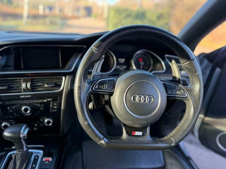 This 2013 Audi A5 TFSI Black Edition offers a sophisticated driving experience with its powerful 2.0 litre petrol engine and the assured grip of four wheel drive. As a Euro 6 compliant vehicle, it meets modern emissions standards. This Black Edition model comes equipped with desirable features including a premium Bang and Olufsen sound system for an immersive audio experience, and electronic three zone climate control to ensure comfort for all occupants. The convenience of a Bluetooth interface for mobile telephone preparation and bi-xenon plus headlights with automatic light sensors further enhance its appeal.