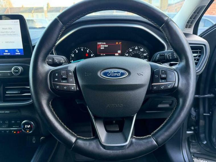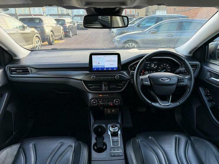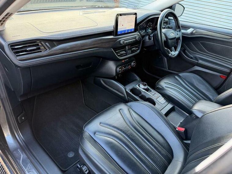 Boasting exceptionally low mileage for its 2019 registration, this Ford Focus Vignale presents a superb opportunity. With only 31957 miles on the clock and a full service history, including a recent service on 20th December 2025 at 31957 miles including new brake discs and brake pads, its provenance is excellent. This Euro 6 compliant 1.5L petrol model comes with an MOT valid until January 2027 with no advisories, 2 keys and a 6 month warranty for your peace of mind. The Vignale trim level ensures a premium experience, enhanced by the inclusion of a Driver Assistance Pack with adaptive cruise control, dual zone electronic automatic climate control, heated front seats, heated steering wheel, B&O sound system, a head up display, Apple CarPlay, hands free park assist, ambient multicolor interior lighting and LED headlights.