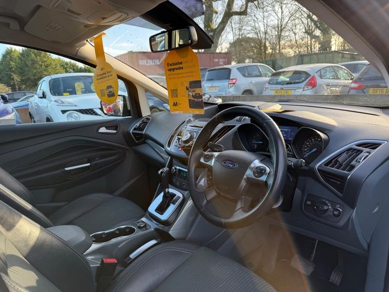 Finished in the beautiful Metallic Silver, this C-Max stands out with its half LEATHER INTERIOR with white stitching. It comes with FULL SERVICE HISTORY and 2 keys. It was last serviced @59, 537 miles, dated 21/07/25. The gearbox was serviced dated on 11/10/22. The vehicle is in a fantastic condition inside & out. It has 4 YOKOHAMA TIRES with plenty of tread. The MOT is valid until 20/07/2026. A TOWBAR has recently been fitted solely for a bike rack. The car has never towed another vehicle