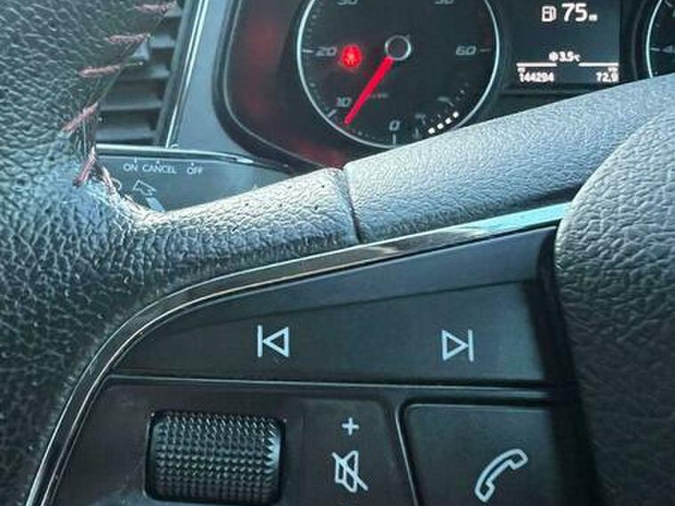 - Steering Wheel - Flat-Bottomed Perforated Leather with Red Stitching and FR Logo