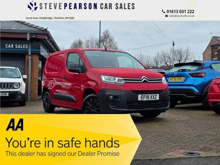 Steve Pearson Car Sales are Pleased to Present this Citroen Berlingo 1.6 650 Enterprise BLUE HDI Panel Van in Red. Only 2 Former Keepers with Service History. (Recent timing belt replacement) .All usual Berlingo refinements include.... ABS, Air conditioning, central locking, climate control, electric windows/mirrors, power steering, adjustable steering, 12v power socket, USB/AUX input, Bluetooth, brake assist, cruise control, parking sensors, daytime running lights, engine immobiliser, front airbags, front fog lights, hill start assist, mp3, touch screen media system, DAB radio, Apple carplay/Android auto, side impact airbags, speakers, steering wheel controls, electric folding mirrors, traction control etc..... Ready to get to work. Looks and Drives Great. Comes with 2 keys, professionally valeted and fully HPI checked. We welcome Part Exchange and can offer Great Finance Deals, Please take a look at our virtual showroom at dealer's website where we have over 50 cars in stock, for more information please telephone or pop in for a cup of tea! Our showroom and floodlit forecourt are open 7 days a week, Tameside's Finest Collection of Low Mileage Quality Cars.