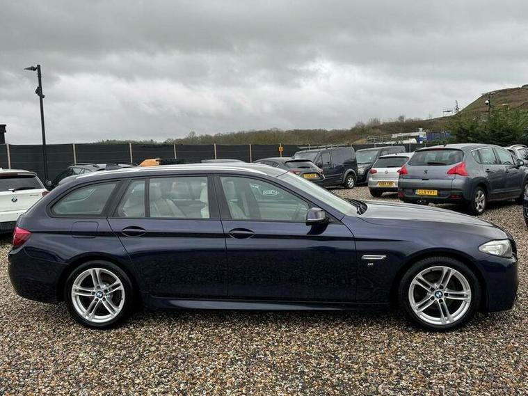This BMW 5 Series 2.0 520d M Sport Touring Auto Euro 6 is a premium estate car that perfectly combines performance, comfort and everyday practicality. Registered in 2013 (63) and finished in a striking blue, it has covered 100, 000 miles and has had 4 owners from new. Powered by BMW?s efficient and reliable 2.0 diesel engine and paired with a smooth automatic gearbox, it delivers strong performance while remaining economical, making it ideal for both long motorway journeys and daily driving. Being ULEZ compliant, it can be driven in all low-emission zones with no additional charges.