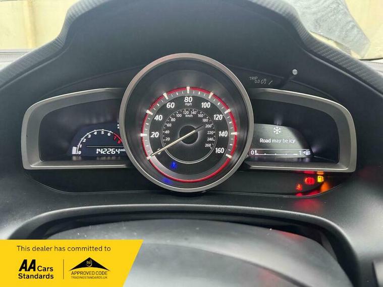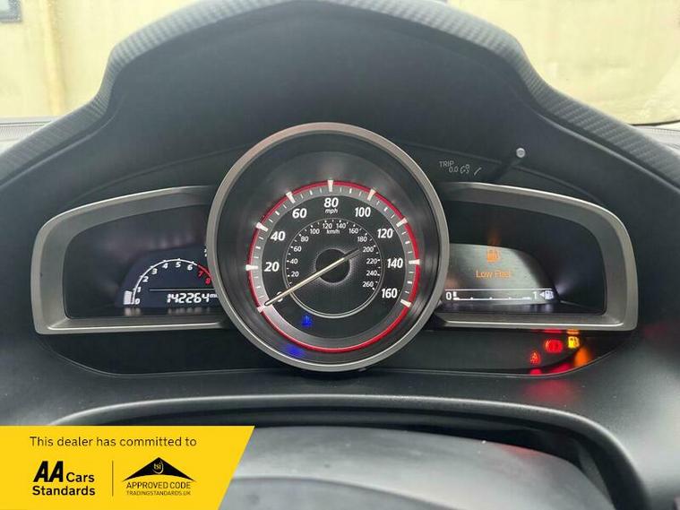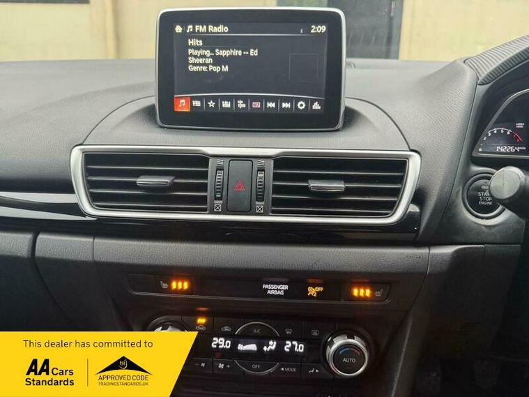 This 2015 Mazda3 SKYACTIV-G SE-L Nav presents a superb ownership proposition, having been cared for by only two owners. This particular Mazda3 is equipped with a responsive 2.0 litre petrol engine, offering an engaging driving experience with a 0-62mph acceleration time of just 8.9 seconds. The SE-L Nav trim level ensures a comfortable and convenient journey, featuring dual zone climate control for personalised comfort, heated front seats for those colder mornings, and dusk sensing automatic headlights. For added peace of mind and ease of parking, it includes rear parking sensors and powerful Bi-Xenon headlights.