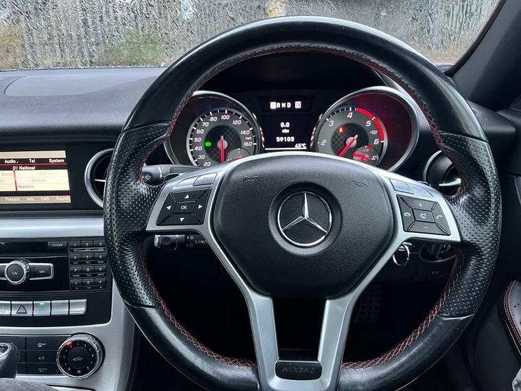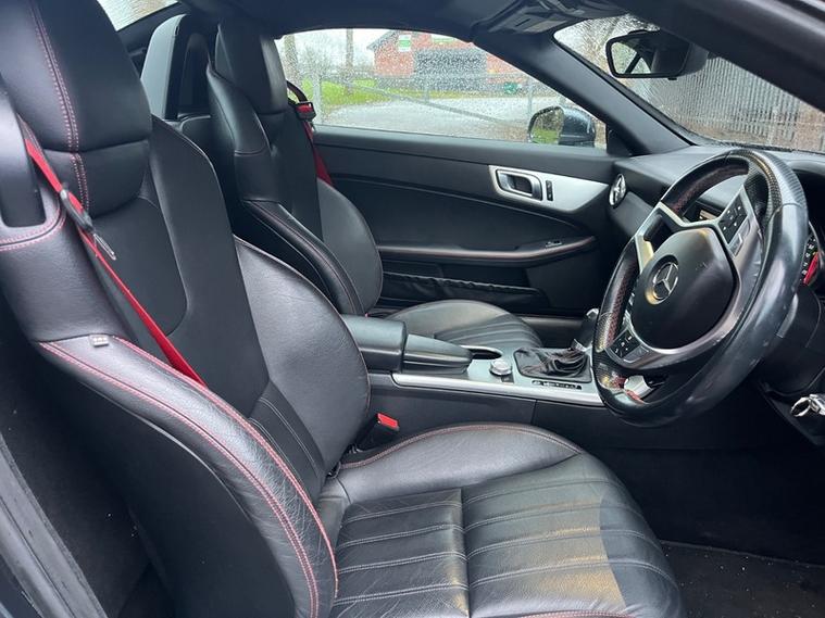 Further enhancing your driving experience, this SLK comes equipped with a premium Harman Kardon Logic 7 surround sound system for exceptional audio quality. The Driving Assistance Package adds peace of mind with features like Blind Spot Assistance and Adaptive Cruise Control. This SLK AMG Sport offers impressive performance, accelerating from 0 to 62 miles per hour in a swift 6.7 seconds, demonstrating its dynamic capabilities. Additionally, it provides a surprisingly large boot space, making it a practical choice for those who appreciate both performance and everyday usability.