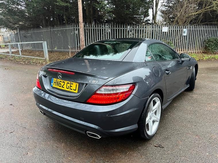 This 2012 Mercedes Benz SLK250 CDI AMG Sport presents a rare find with its remarkably low mileage of just 58, 655 miles and having had only three owners. This particular SLK is finished in the striking AMG Sport trim and boasts a powerful yet efficient 2.1 litre diesel engine. Inside, you'll discover the luxurious black designo leather trim, complemented by the innovative AIRSCARF neck level heating system, ensuring comfort in all conditions. The Panoramic Vario Roof, which includes an opening panoramic sunroof, allows you to enjoy the open air or a sky view at your leisure.