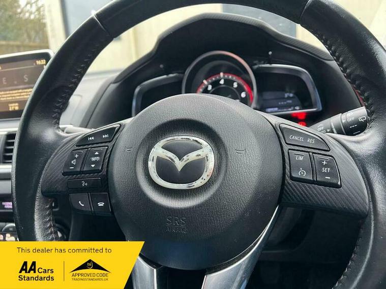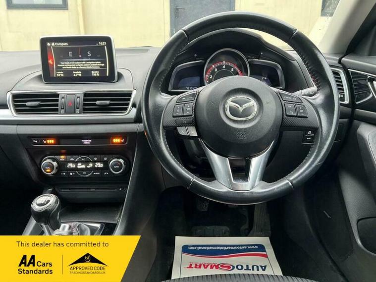The driving experience is further enhanced by the premium BOSE Centrepoint Surround System, featuring nine speakers to deliver an immersive audio experience. This Mazda3 also boasts impressive performance, achieving 0-62mph in a swift 8.1 seconds, demonstrating its dynamic capabilities. Furthermore, the generous boot space ensures practicality for all your needs, making this Mazda3 a well rounded and capable vehicle that stands out from others in its class.