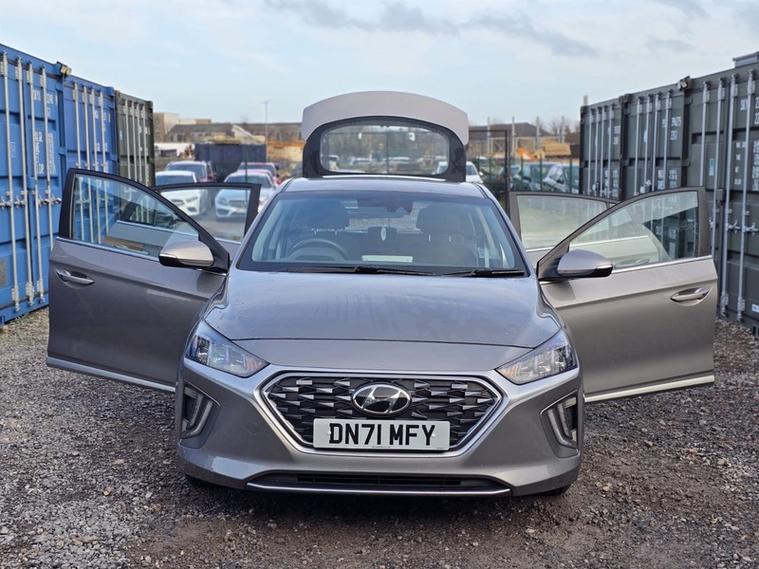 This car comes with 5 seats, Grey, 2 owners, 100 Percent MapCare Programme - 10 Years of Map Updates, 12V Power Outlet, 15in Alloy Wheels with Aerodynamic Wheel Trims - Design B, ABS - Anti-Lock Brake System, Air Conditioning - Driver-Only Mode, Air Conditioning - Dual Zone Climate Control, Airbags - Front - Front Side - Curtain and Drivers Knee, Arm Rest - Front with Storage, Automatic Dimming Rear View Mirror, Automatic Headlights with Dusk Sensor, Autonomous Emergency Brake, BlueLink, Bluetooth Connectivity, Centre Console - Tablet Storage, Cruise Control, Cup Holders - Front, Daytime Running Lights - LED, Deadlocks, Door Mirror Puddle Lights, Door Mirrors - Body Coloured, Door Mirrors - Electric Adjustment and Heated with Power Fold, Door Scuff - Chrome with IONIQ Logo, Drive Mode Select - Gear Lever, Driver Attention Alert - DAA, Drivers Seat Height Adjustment - Manual, Drivers Supervision Instrument Cluster with TFT Display - 7in, ECO DAS - ECO-Driving Assistant System, Electric Power Steering with Variable Drive Modes, Electric Windows - Front and Rear, Electric Windows - Front with Anti-Trap and One Touch Controls, Electronic Stability Control - ESC, Exterior Door Handles - Body Coloured with Chrome Insert, Fog Lights - LED Rear, Front Head Restraints - Vertical and Horizontal Adjustment, Front Passenger Airbag De-Activation Switch, Front Passengers Seat - Heated, Front Seat Back Pockets - Drivers Seat, Front Seat Back Pockets - Passengers Seat, HAC - Hill-Start Assist Control, Head Restraints - Rear with Vertical Adjustment, Headlights - Higher Beam LED, Headlights - Lower Beam LED, Heated Rear Windscreen, Heated Steering Wheel, Indicator Lights - Door Mirror - LED, Interior Door Handles - Chrome Effect, Interior Light - Centre, Interior Light - Luggage Compartment, Interior Light - Map Reading Lights, Lane Departure Warning System with Lane Keeping Assist, Leather Wrapped Steering Wheel, Luggage Net, Paddle Shift Gear Change, Parking Brake - Foot, Parking Sensors - Rear, Parking System - Rear Camera and Guidance System, Passenger Seat Height Adjustment - Manual, Phone Connection - Android Auto, Phone Connection - Apple CarPlay, Positioning Lights LED, Radiator Grille - Active Air Flap, Radiator Grille - Chrome, Radio - RDS and Digital Radio - DAB, Rear Air Vents in Centre Console, Rear Bumper - Two-Tone, Rear Lights - LED, Rear Spoiler with Integral LED Brake Light, Rear View Monitor, Remote Central Locking, Seats - Drivers Electric Lumbar Support, Seats - Heated Drivers, Side Body Moulding, Smart Key - Keyless Entry with Engine Start-Stop Button, Solar Glass with Windscreen Shade Band, Speakers - Upgraded Infinity Sound System - 1 Centre - 2 Tweeters - 2 Front - 2 Rear - 1 Subwoofer and 1 Ext. Amp, Split Folding Rear Seats - 60-40, Steering Wheel with Audio - Phone and Cruise Controls, Sun Visors with Driver and Passenger Illuminated Vanity Mirrors, Sunglasses Holder, Touchscreen Satellite Navigation - 10.25in, Tyre Pressure Monitoring System with Individual Tyre Display, Tyre Repair Kit, USB - Drivers Arm Rest - Charging Only, USB and AUX Connections - Front, Window Surround - Chrome Finish, Windscreen Washer Fluid Sensor and Warning Indicator, Wireless Phone Charging Pad, eCall,