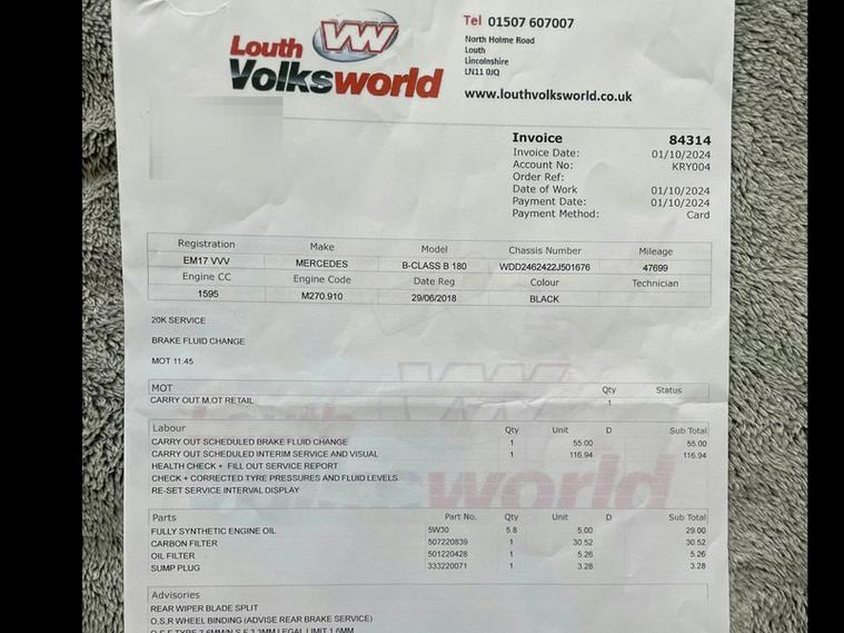 This car comes with 5 seats, Black, 2 owners, 17in Alloy Wheels - 5 Twin-Spoke Design Painted in Himalayas Grey, ABS - Anti-Lock Braking System, ASR - Acceleration Skid Control, ATTENTION Assist - Alerts the Driver to Increasing Fatigue and Inattention, Active Brake Assist with Hold Function - Hill Start Assist - Priming and Dry Braking in the Wet, Active Braking Assist, Air Conditioning - THERMOTRONIC Luxury Automatic Climate Control - Two-Zone, Air Vents with Surround and Cruciform Nozzle in Silver Chrome, Airbag - Kneebag for Driver, Airbags - Driver and Front Passenger, Airbags - Sidebag for Driver and Front Passenger - Combined Thorax-Pelvis Bag, Airbags - Windowbags, Alarm System with Immobiliser and Interior Protection - Thatcham Category 1, Anti-Theft Protection Package, Audio 20 Radio-CD, Automatic Child Seat Recognition Sensor, Automatic Front Passenger Airbag Deactivation, BAS - Brake Assist with Brake Servo Assistance when Emergency Braking is Detected, Beltline Strips - Chrome, Braking - Adaptive Brake Lights - Flash Under Emergency Braking, Bumpers - Body-Coloured, Centre Armrest - Front with Stowage, Childproof Locks Rear Doors-Manually Operated and Rear Electric Windows-Electrically Operated, Comfort Suspension, Crash-Responsive Emergency Lighting, Cruise Control with Limiter, Direct Select Shift Lever with Steering Wheel Shift Paddles, Door Handles - Body-Coloured, Door Mirrors - Body-Coloured with Integrated LED Indicators and Aspherically Curved Mirror Glass, Door Mirrors - Electrically Adjustable and Heated, Door Sills - Front Door Sills with Mercedes-Benz Lettering, Dynamic Select with a Choice of Driving Modes - ECO-Comfort-Sport and Individual, ESP Curve Dynamic Assist, Electric Parking Brake, Electric Windows - 4, Exhaust System - Twin Trapezoidal Tailpipes in Polished Stainless Steel, First Aid Kit and Warning Triangle, Floor Mats with Edging and Contrast Stitching, Footwell Lighting - Front and Rear, Garmin Map Pilot Navigation System, Glass - Rear Windscreen - Heated with Timer Control, Headlamp Assist - Automatic Headlamp Activation in Dark Conditions, Heated Front Seats, ISOFIX and Top-Tether Child Seat Fixing Points in Rear - Two Outer Seats, Instrument Cluster - Electronic Service Interval Indicator ASSYST, Instrument Cluster - Outside Temperature Display, Instrument Cluster - Upper Control Panel with Galvanised Switches in Silver Chrome, Instrument Cluster - Warning Buzzer and Warning Display if a Seat Belt is not Fastened - Lights Are Left On or Parking Brake is Engaged, Instrument Cluster - Warning Indicators For Fuel-Oil-Coolant-Washer Fluid Levels-Brake Wear, Instrument Cluster with 4.5in TFT Colour Multifunction Display with Silver-Coloured Dials and Red Needles, Interior Lighting - Ambient Lighting Single-Colour with Indirect Illumination of the Interior Door Handles at Front and Rear and Door Trim Elements, Interior Lighting - Courtesy White and Warning Red Lights in the Front Doors and Boot Lid, Interior Lighting - Sun Visor with Illuminated Vanity Mirror for Driver and Front Passenger, Interior Lighting in Rear with Integral Reading Lights and Locator Lighting, KEYLESS-GO Starting Function, LED High Performance Headlamps, Light Switch in High-Gloss Black with Ring in Silver Chrome, Lights - High-Level Third Brake Light - LED Technology, Lights - LED Fibre-Optic Tail Lamps and LED Brake Lights, Media Display - 8in, Media Interface, Mercedes Me Connect - Standard Services, Mirrors - Rear-View Mirror with Additional Lighting, Non-Smoker Package Including 12V Socket and Stowage Compartment in the Front, Parking - Reversing Camera with Dynamic Guidelines on the Media Display, Power Steering - with Speed-Sensitive Servo Assistance, Radiator Grille - Two Louvres in Iridium Silver with Chrome Inserts, Rear Windscreen Wiper with Intermittent Wipe and Automatic Activation When Reversing, Remote Central Locking, Roof Lining - Black, Seat Belts - Rear Three-Point - 3, Seat Belts Reminder - Front and Rear, Seat Comfort Package, Seat Occupancy Sensor - Front Passenger Seat, Seats - Front Cushion Length Adjustment, Seats - Rear Seat Backrests - Split Folding 1-3 - 2-3, Seats with Adjustable Head Restraints, Smartphone Integration, Steering Column - Manually Adjustable for Height and Reach, Steering Wheel - 3-Spoke Leather - 12-Button Multi-Function with Silver Chrome Trim and Perforated Grip Area and Contrast Stitching, Storage Compartment in Centre Console with Retractable Cover, Stowage - Compartments in Front Doors, Stowage - Double Cup Holder in Centre Console, Stowage - Retractable Load Compartment Cover, TIREFIT with Tyre Inflation Compressor, Trip Computer Showing Current Fuel Consumption, Tyre Pressure Monitoring System, Wiper System - Windscreen Wipers Including Rain Sensor with Two Sensitivity Stages, eCall - Emergency Call System,
