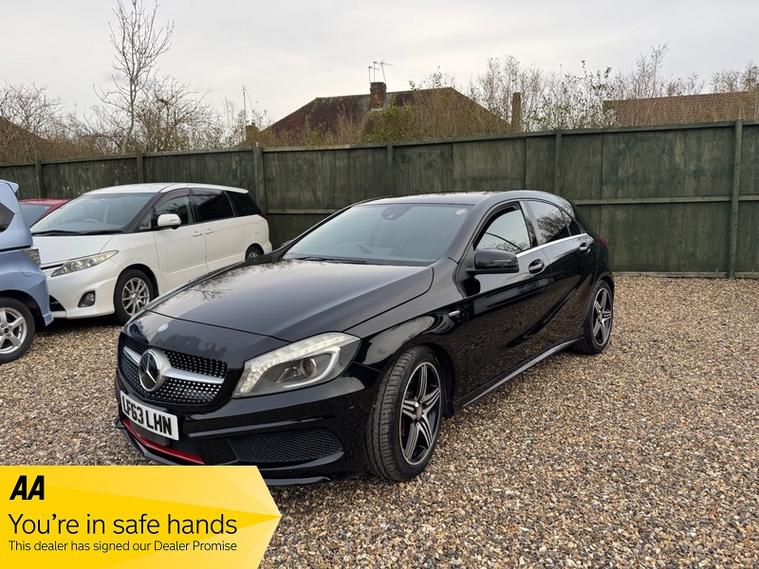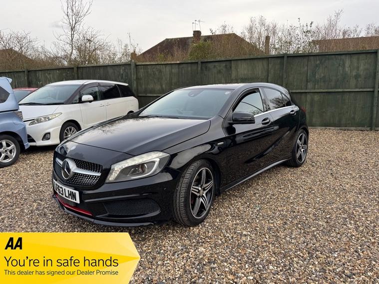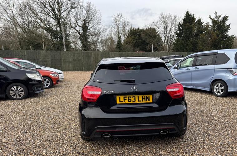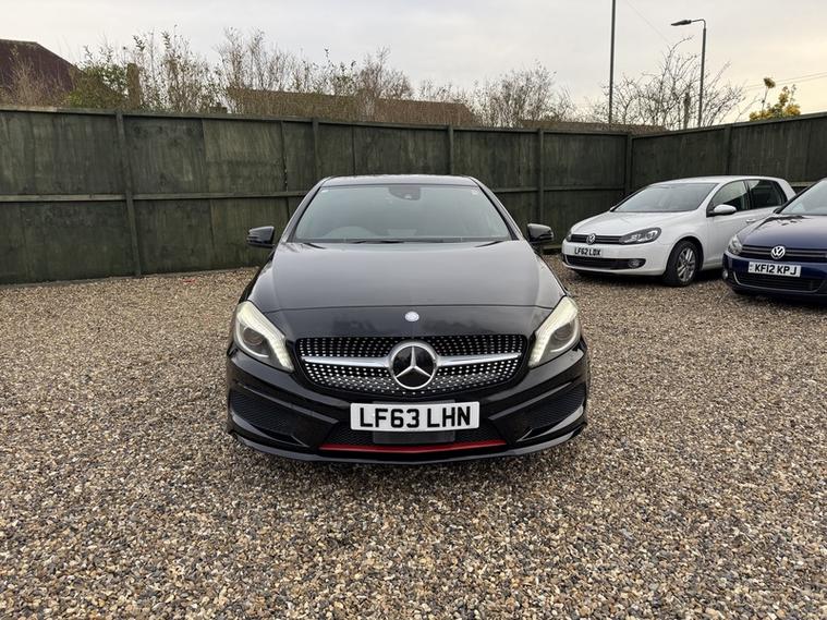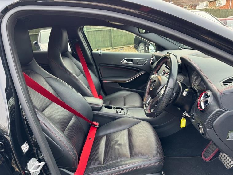 # Here is a Mercedes Benz A250 efficiency Sport Automatic in metallic Black. (63) plate 2014 year * Full loader car * ULEZ Compliant, Low Mileage 70k These cars are best appreciated once viewed. Next MOT due 11/12/2026, 1 previous owner, Distronic controls. Anti collision. Safety Radar sensors. Black fully leather bucket seats Black interior inside. Reverse camera. Parking Sensor Front & Back Intelligent lighting. Daytime running lights. Auto folding mirror Memory seats. Good Solid interior suspension body work, All 4 new tyres are very good Very smooth drive Very comfortable. Sparkling clean inside and outside. In superb condition Amazing car to drive.Harman kardon sound system.