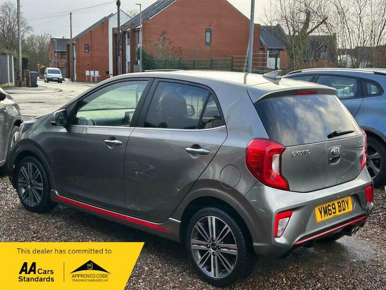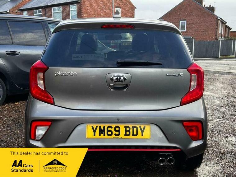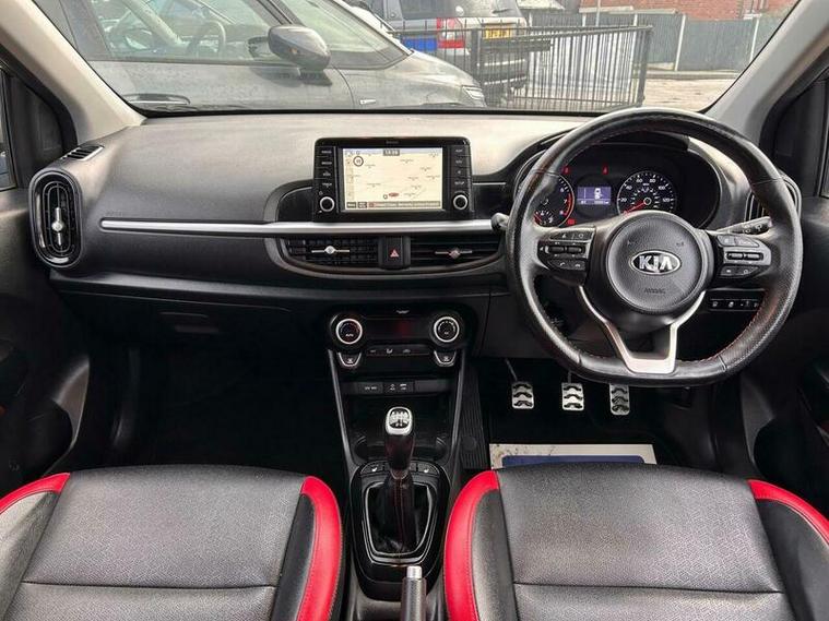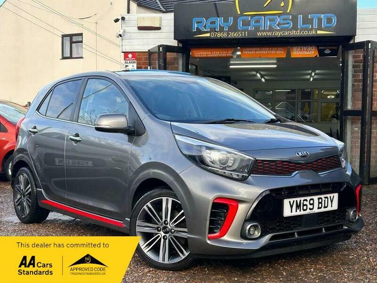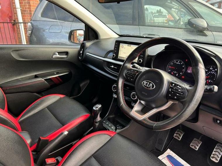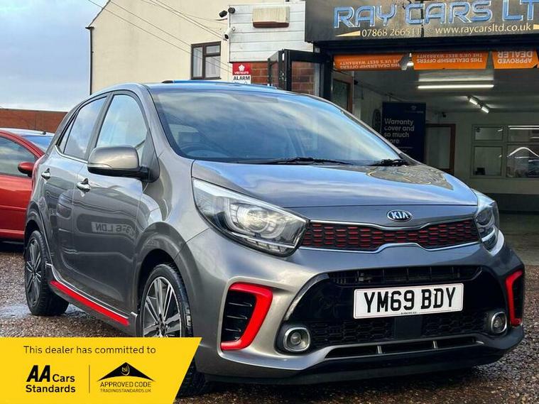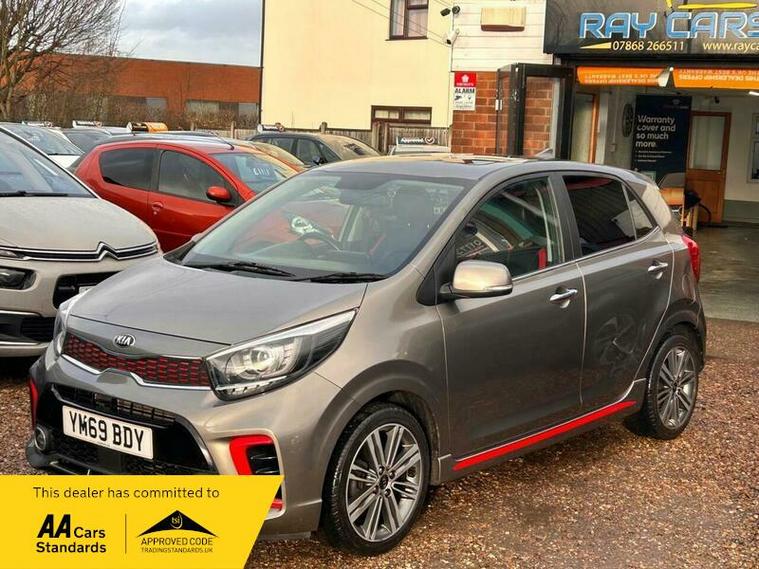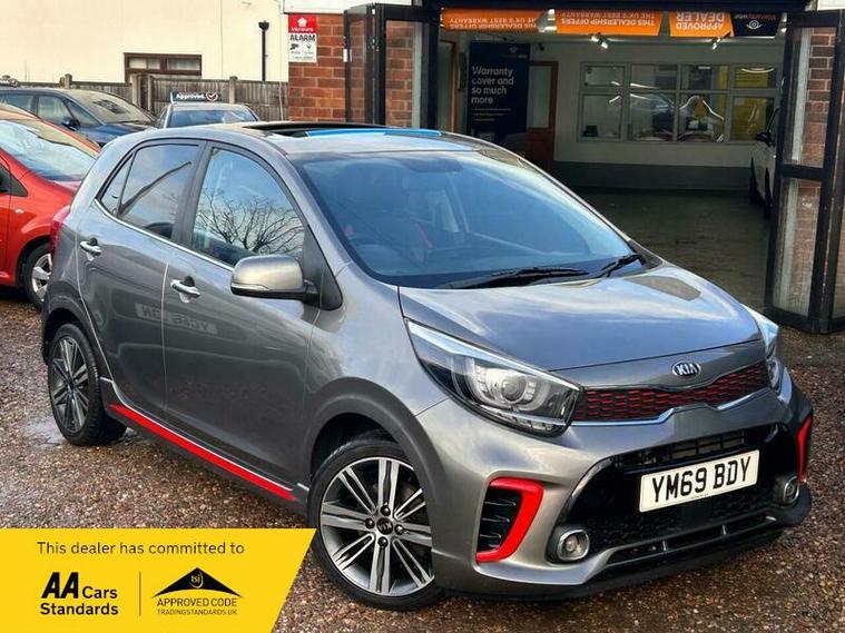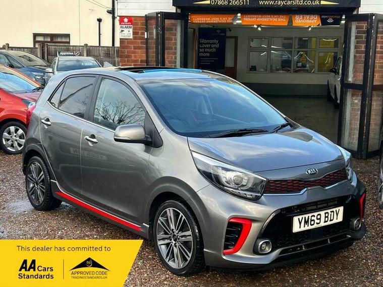 **Low Mileage**Kia Picanto 1.0 T-GDi GT-Line S Euro 6 (s/s) 5dr in excellent condition and comes with full main dealership service history with most recent one at 18500 Miles. Fresh clean MOT. SIX Months free warranty, Extended warranty is available. 12 Months free AA Roadside breakdown cover. 2 Keys. Full leather interior with front heated seats, Heated steering wheel, Sliding sun roof, Reverse camera with parking sensors, Keyless entry and start, SAT Nav, Cruise control, DAB Radio, Bluetooth media streaming, Hill start assist . Finance option is available, please contact us for more information. Nationwide delivery service is available.