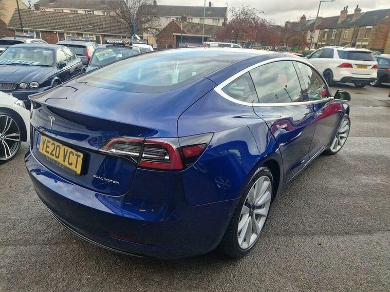 This 2020 Tesla Model 3 Long Range has been cherished by only one owner since new, offering a superb electric driving experience. As a Long Range variant, it boasts a substantial 78 kWh battery, providing an impressive maximum range of 348 miles when new. This four wheel drive electric vehicle is equipped with convenient features such as heated front seats, LED headlights for enhanced visibility, and a fixed panoramic glass roof that floods the cabin with natural light. Access is made simple with keyless entry and remote control via an app, and parking is made easier with rear parking sensors.