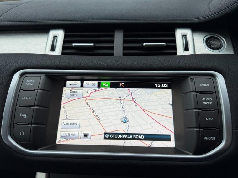 This high specification Evoque features the smooth 9-speed automatic gearbox and intelligent four wheel drive system, along with a panoramic glass roof, full leather interior, electric memory seats, xenon headlights, reversing camera, satellite navigation, Bluetooth connectivity and heated seats. Comfort and convenience are further enhanced with dual zone digital climate control, air conditioning, cruise control, heated front and rear screens, voice control, automatic lights and wipers, power steering, adjustable suspension, keyless entry, Meridian sound system, on-board computer and electric windows.