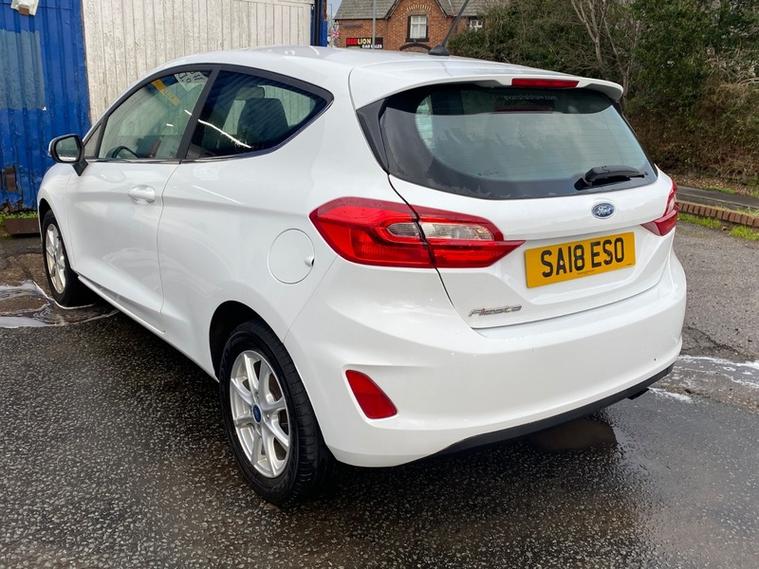 *Just arrived and awaiting preparation, register your interest today* Brilliant low mileage example, 2018 Ford Fiesta 1.0T EcoBoost Zetec Hatchback 3dr Petrol Manual Euro 6 (s/s) (100 ps). Warranted mileage covered 49590 miles. Only the 1 former keeper from brand new. Major service including timing belt kit and water pump replacemwnt was carried out at 49k miles. Brand new tires fitted at 49k miles. The current MOT (advisory free) is valid til April 2026 **12 months MOT at point of sale. Spacious and practical. Fuel efficient offers up to 65 mpg combined. 12 months of road tax cost 195 pounds, Euro 6 ULEZ compliant. Low insurance, group 10 ideal for new/first time drivers. Zetec model finished in white paint with black upholstery, alloy wheels, auto lights, DRL, front fog lights, multifunction steering wheel, cruise control, cliamte control, air con, quick clear windscreen, touchscreen media, navigation, DAB, FM, AM, bluetooth connectivity, phone and media, USB, central locking, electric mirrors, and electric windows ++ Supplied with 3 months warranty and 12 months complementary AA breakdown cover for your complete peace of mind.