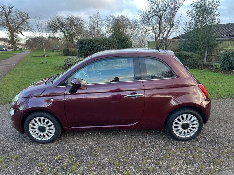 Here for sale at Aylott motors Ltd we are delighted to present this lovely example of this Fiat 500 Lounge Finished in metallic Burgundy . This particular example benefits from some lovely spec including upgraded , climate control with air conditioning , Bluetooth connectivity, USB ports , day time running lights , fog lights , electric windows , media pack DAB radio, remote central locking , upgraded alloy wheels , upgraded sound system , ulez compliant , + much much more dealer's website As we are an AA accredited dealer you will receive 12 months complimentary AA roadside assistance. AA warranty packages available up to 3 years and superb low rate zero deposit finance deals available today. Why not give us a call or visit our website finance calculator to see how affordable your new car could be. , We are rated 5 stars by our customer reviews on Autotrader, Facebook, Google and Car Gurus so you can be assured you are dealing with a company that truly cares about the customer. We take great pride in providing a personal quality service like no other and guarantee to make your purchase a smooth and pleasant experience. Please read our customer reviews online to see what they have to say about the level of service they received from us when purchasing a car. Buy Your Car From The Best.