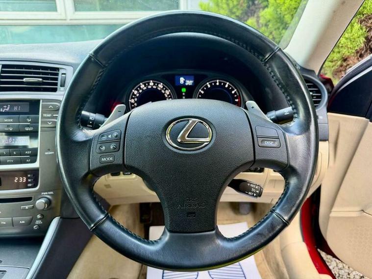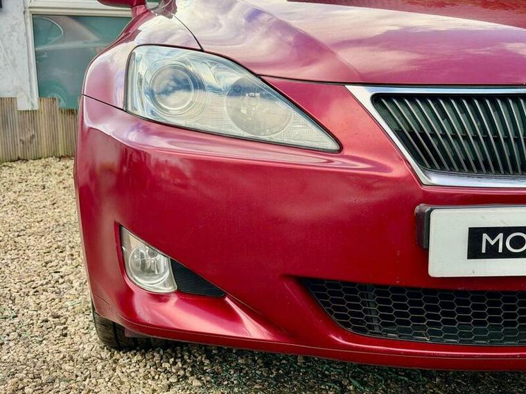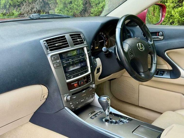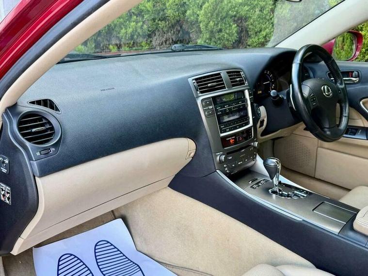 A stunning red Lexus IS250 with a cream leather interior, combining luxury and reliability. A smooth, affordable automatic powered by Lexus? refined 2.5 V6 engine, offering a quiet, comfortable yet responsive drive. Just 1 former owner, supplied with 2 keys and an outstanding 18 service records, including a recent full service. Recently fitted with new front and rear brake pads, ready to drive away. Known for excellent build quality, comfort, strong safety features and legendary Lexus reliability.