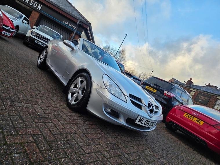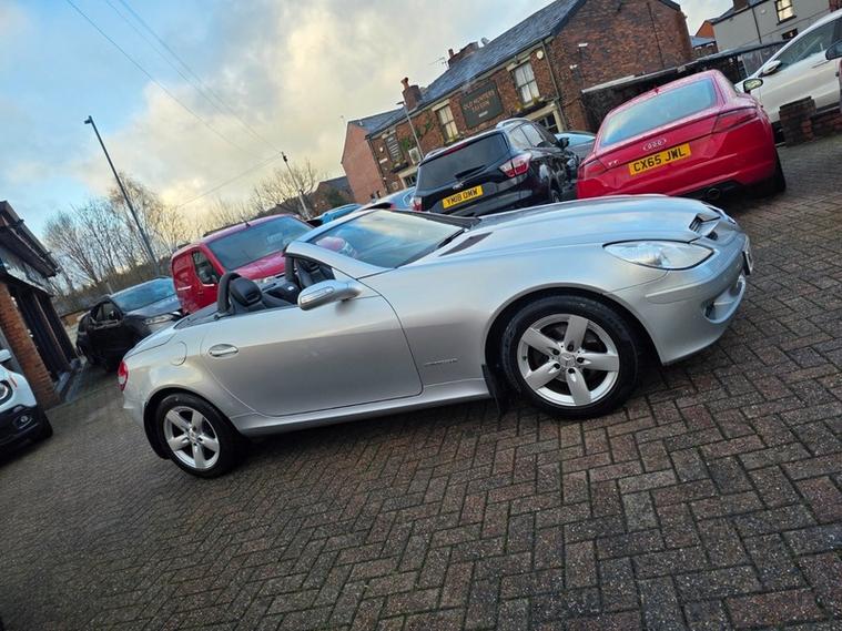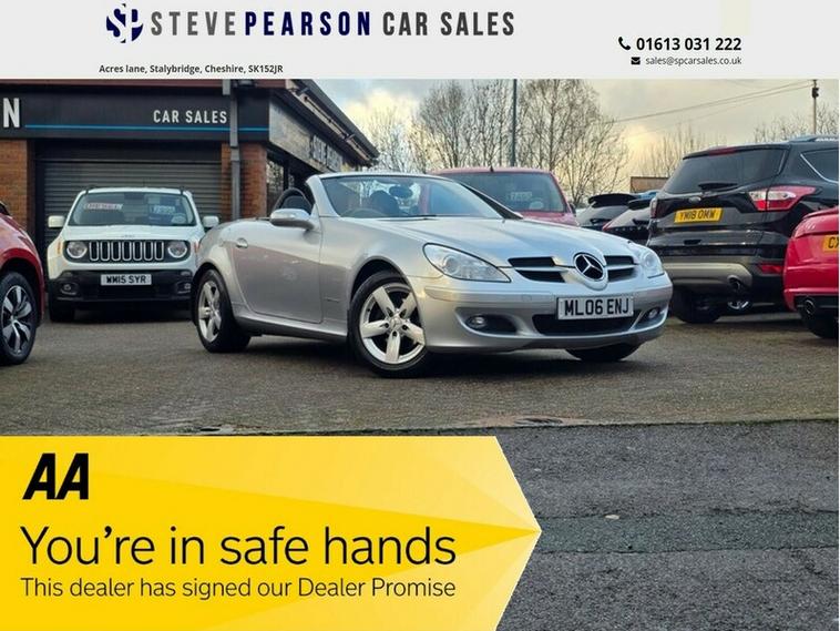Steve Pearson Car Sales are Pleased to Present this Low Mileage Mercedes-Benz SLK 200 1.8 Kompressor in metallic Silver. Only One Owner from New with Full Service History. All usual SLK refinements include..... ABS, air conditioning, alloy wheels, cd player, central locking, climate control, air scarf, heated seats, leather sport seats, electric windows/mirrors, electric convertible hard top roof, power steering, adjustable steering, body coloured bumpers, brake assist, cruise control, automatic headlights, engine immobiliser, ESP, front airbags, front fog lights, mp3, radio, parking sensors, side impact airbags, speakers, steering wheel controls, traction control etc.... Looks and Drives Superb. Comes with 2 keys, professionally valeted and fully HPI checked. We welcome Part Exchange and can offer Great Finance Deals, Please take a look at our virtual showroom at dealer's website where we have over 50 cars in stock, for more information please telephone or pop in for a cup of tea! Our showroom and floodlit forecourt are open 7 days a week, Tameside's Finest Collection of Low Mileage Quality Cars.
