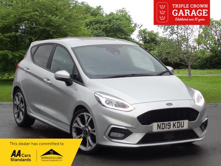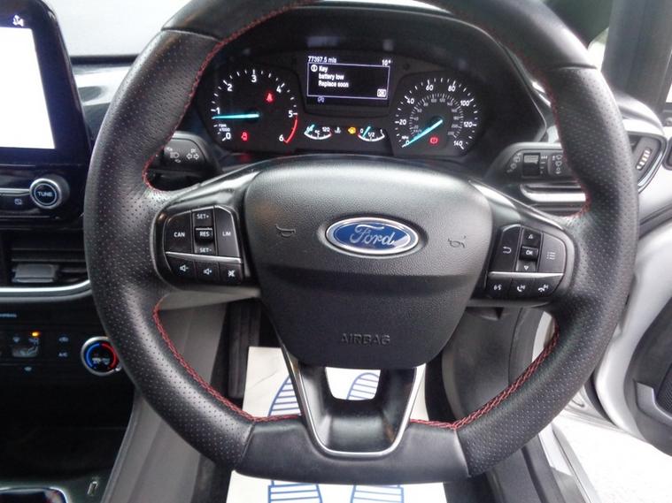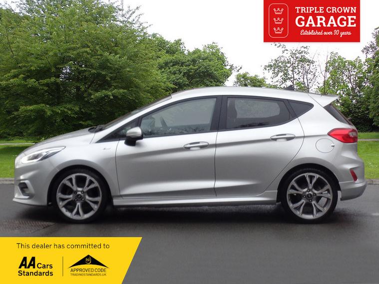 THIS GREAT FIESTA ST LINE COMES WITH WARRANTED MILES AND SERVICE HISTORY . THE SPEC INCLUDES SAT NAV, 18' ALLOYS, PRIVACY GLASS, AIR CON, TOUCHSCREEN DAB RADIO, USB, BLUETOOTH, PRIVACY GLASS, MUSIC STREAMING, SPEED LIMITER, CRUISE CONTROL, CENTRAL LOCKING AND ELECTRIC WINDOWS AUTOMATIC HEADLIGHTS.SPORTS PEDALS, THE CAR WILL HAVE A NEW MOT ON PURCHASE. FREE AA BREAKDOWN COVER. A SPARE KEY IS SUPPLIED, NO ADMIN FEES.