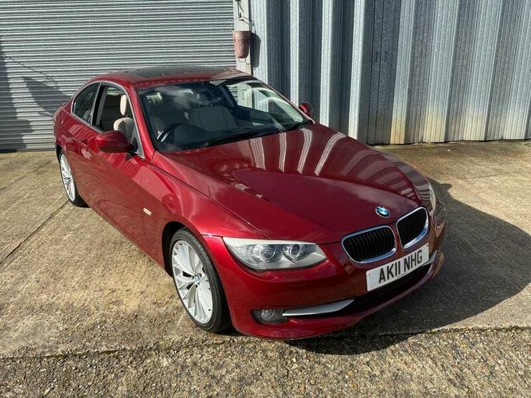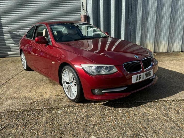 MASSIVE SPEC LOW MILEAGE 3 SERIES COUPE IN A REALLY EYE CATCHING COLOUR, VERMILLION RED METALLIC, WITH CONTRASTING LIGHT OATMEAL LEATHER INTERIOR WITH WOOD DASH ACCENTS. THIS IS A REALLY GOOD LOOKING CAR.
