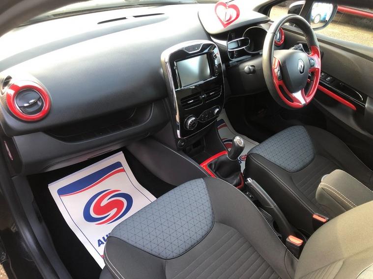 Genuine low mileage, highly maintained example of this stunning Renault Clio 1.2 Dynamique S model in Metallic Black. £20 road tax for the year, low insurance group & excellent fuel economy, ideal car for economical motoring. Benefits from built in Satellite navigation system, Bluetooth telephone prep, USB media input, cruise control, rear parking sensors & 17' Alloy wheels. Ideal small modern reliable hatchback. HPI CLEAR, FULL 12 MONTHS MOT ON PURCHASE, EXCELLENT SERVICE HISTORY INC 5 STAMPS, REMOTE KEY. FULL DEALER FACILITIES INC 7 DAYS A WEEK OPENING HOURS. 3 MONTHS NATIONWIDE WARRANTY & 12 MONTHS FREE AA BREAKDOWN COVER INCLUDED. NO HIDDEN COSTS OR ADMIN FEES. VERY TIDY GENUINE LOW MILEAGE EXAMPLE. FIRST TO SEE WILL BUY!!