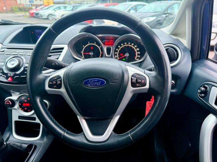ABSOLUTE CARS have this 5 Door Ford Fiesta 1.4 Titanium in Metallic Blue with Alloys. *Cambelt & Water Pump Replaced 15/04/2019 at 53676 Miles* Call in for a test drive, finance arranged & part exchange considered., 3 months warranty, Next MOT due 16/12/2026, Last serviced at 84, 110 miles, Full service history, Grey Cloth interior, 5 seats, Metallic Blue, 3 owners, Upgrades - Metallic Paint, Spare Wheel - 14in x 5.5 Steel Wheel, City Pack (Titanium), Standard Features - 16in 15 - Spoke Alloy Wheels (195/45 Tyres) with Locking Wheel Nuts, 4 Front and 2 Rear Speakers, 60/40 Split Folding Back and Fixed Cushion, ATC Air Conditioning, Accessory Power Socket (12V), Anti-Lock Brakes, Emergency Brake Assist (EBA), Auto Wipers inc. Auto Headlamps, Blu. Hands-Free Tech./Vo. Con./USB Port, Body Coloured Bumpers, Body Coloured Rear Spoiler, Centre Console, Centre High - Mounted Rear Brake Light, Centre Rear Seat Belt, Cruise Control, Drivers Airbag, Drivers Knee Airbag, Electric Power Assisted Steering (EPAS), Electrically - Operated Front Windows with One - Touch Lowering/Closing on Drivers Side, Electrically - Operated/Heated/Foldable Door Mirrors with Integrated Side Indicators, Electronic Brake - Force Distribution (EBD), Electronic Stability Programme (ESP), Floor Mats - Front and Rear, Velour, Front Fog Lights with Chrome Bezel Rings, Front Side Airbag (Head and Thorax), Front and Rear Head Restraints, ISOFIX Mounting Brackets for Child Seat (Rear Outer Seats Only), Immobiliser, Leather Gear Knob, Leather Trimmed 3 - Spoke Steering Wheel, Manual 4 - Way Driver Seat Adjust, Passengers Airbag, Perimeter Alarm, Privacy Glass, QuickClear Heated Windscreen, Radio/CD, MP3 Compatible, Multi - Functional Matrix Display, AUX / USB Connection, Rake and Reach Adjustable Steering Column, Remote Audio Controls, Remote Central Locking with Two Keys, Seat Buckle Pre-Tensioners on Front Seat Belts, Sony Radio CD Player & Bluetooth USB, Traction Assist, Trip Computer, Two Cup Holders, Tyre Mobility Kit, Upholstery Cloth, AS WE ARE AN AA CARS DEALER THIS VEHICLE COMES WITH 12 MONTHS AA BREAKDOWN COVER.