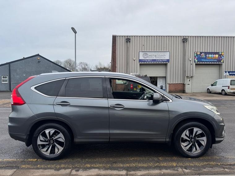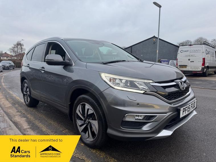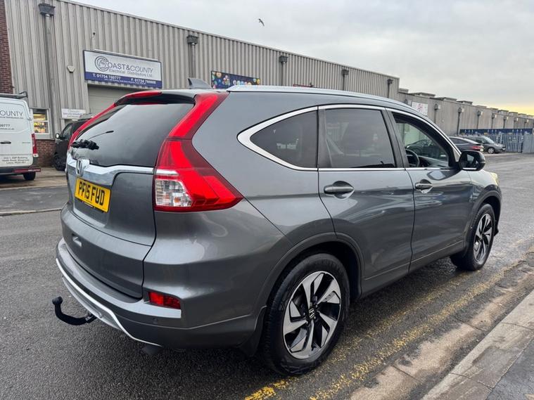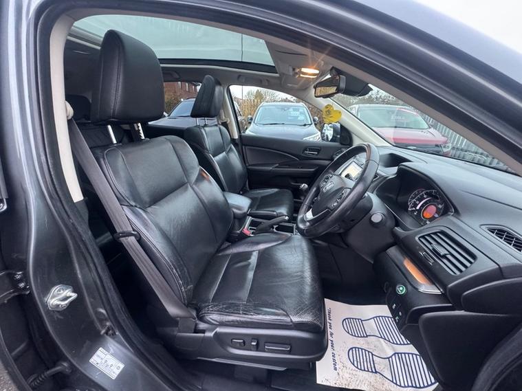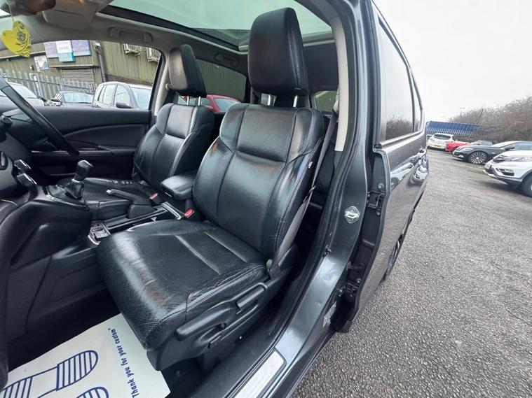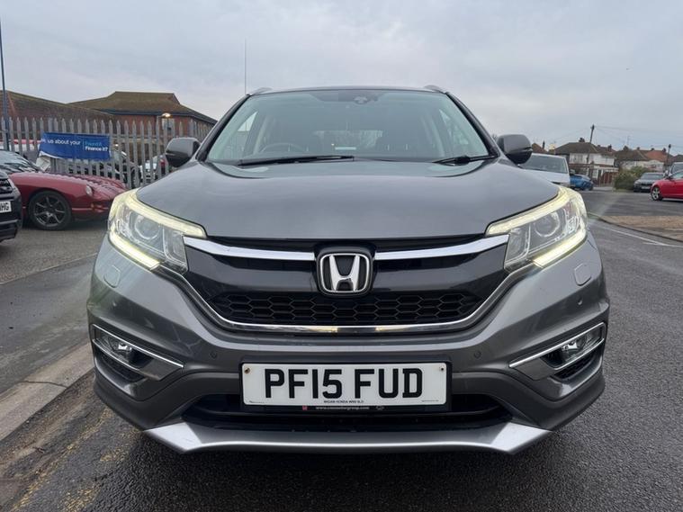 2015 Honda CR-V 1.6 i-DTEC 160 EX 5dr in Grey. Runs and Drives very well. Facelift 2015 model which is ULEZ compliant. Highly practical vehicle excelling in reliability, safety, practicality and economy. 4WD model. Top of the range EX model which comes fully loaded including Navigation, Reverse camera, Cruise control, Bluetooth phone + music, Panoramic roof, 18 inch alloy wheels, Keyless entry/exit with stop/start button, Power folding tailgate, Full leather electric heated seats, Towbar with electrics, Front and rear parking sensors, Economy mode and much more. 12 Months MOT, Service and 6 Months Warranty with the sale. 1.6 i-DTEC over 55 MPG combined, fantastic economy for a quality built 4WD SUV. and with 158 BHP, pulls impressively. 3 previous owners and partial service history from Honda Main Dealer. A nice example of the EX spec facelift Honda CR-V. Finance Available.