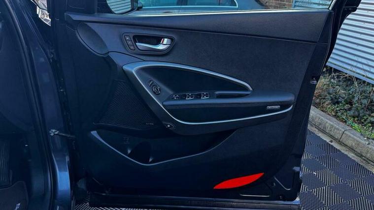 This 2016 Hyundai Santa Fe CRDi Premium SE boasts a 1 previous owner and a full service history and 2 keys, ensuring excellent provenance. This Euro 6 compliant, four wheel drive model features a powerful 2.2 litre diesel engine and offers flexible seating for seven occupants. It comes equipped with blind spot monitoring, panoramic sunroof, Infinity premium sound, heating and cooling front seats, heated rear seats, Sat Nav. Further enhancing the driving experience are Xenon headlights with dynamic bending, a rear view parking camera, front and rear parking sensors with parking assist, and Bluetooth connectivity. The driver's seat offers 8 way electric adjustment with memory function, ensuring personalised comfort.
