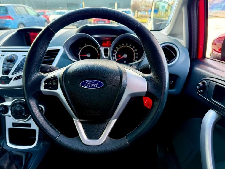ABSOLUTE CARS have this 3 Door Ford Fiesta 1.25 Zetec in Solid Red with Alloys. Call in for a test drive, finance arranged & part exchange considered., 3 months warranty, Next MOT due 01/10/2026, Last serviced at 55, 247 miles, Full service history, Grey Cloth interior, 5 seats, Red, 2 owners, Upgrades - Spare Wheel - 14in x 5.5 Steel Wheel, Standard Features - 16in - Alloy Wheels, 2 Front Speakers, Air Conditioning, Airbag - Driver, Airbag - Driver Seat Head Thorax, Airbag - Front Passenger, Airbag - Front Side, Airbag - Knee Driver, Anti-Lock Brakes (ABS) and Emergency Brake Distribution (EBD), Body Colour Rear Spoiler, Bumpers - Body Colour, Centre Rear Seat Belt, Driver Seat Height Adjust, Electronic Brake Force Distribution (EBD), Front Fog Lights, Head Restraints Front/Rear, Heated Rear Screen, Immobiliser, Leather Gearknob, Leather Steering Wheel, Map Reading Lights/Aesthetic Lighting, Power - Assisted Steering, Power Heated Mirrors, QuickClear Heated Windscreen, Quickclear Heated Windscreen, Radio/CD, MP3 Compatible with 2-Line Display and Aux In, Reach and Rake Steering Wheel, Rear Wash/Wipe, Remote Control for Audio, Remote Double Locking, Split Rear Seats, Third Brake Light, Trip Computer, Upholstery Cloth, Windows - Power Front One-Shot, AS WE ARE AN AA CARS DEALER THIS VEHICLE COMES WITH 12 MONTHS AA BREAKDOWN COVER.