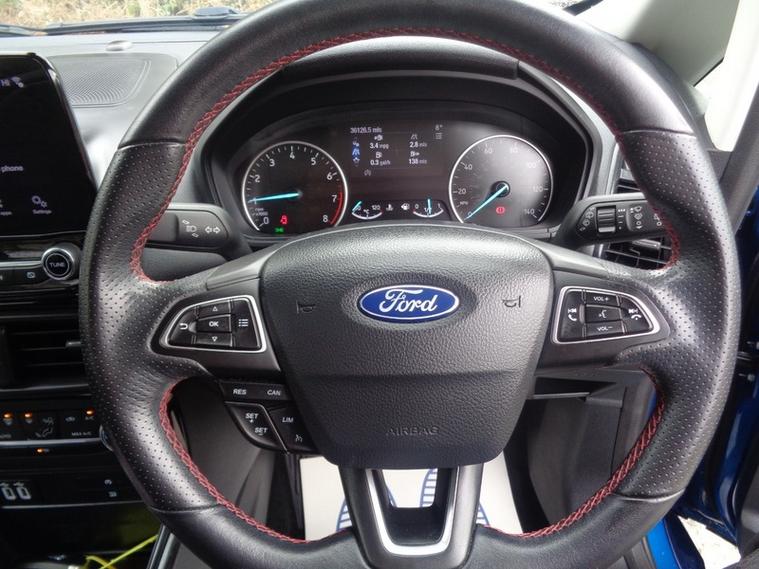 FULL HISTORTY!! THIS GREAT FORD ECOSPORT ST-LINE COMES WITH WARRANTED MILES AND SERVICE HISTORY WITH 6 SERVICE STAMPS, *** EXTRA SPEC INCLUDES, REAR VIEW CAMERA, INTERGRATED DASH CD PLAYER, BLIND SPOT CONTROL LIGHTS, POWER MIRRORS, LUMBER SPPORT*** THE SPEC INCLUDES, THE NEW ECOSPORT SHAPE. A LARGE TOUCHSCREEN INTERFACE WHICH FEATURES SAT NAV, APPLE AND ANDROID CAR PLAY, CRUISE CONTROL AND A LIMITER, AIR CON, DAB RADIO, LEATHER TRIM, 18' ALLOYS, ELETRIC WINDOWS FRONT AND REAR, CLIMATE CONTROL, ROOF BARS , SPORTS PEDALS, THIS CAR WILL COME WITH A BRAND NEW MOT ON PURCAHSE WITH NO ADVISORIES, 12 MONTHS AA BREAKDOWN COVER AND A 3 MONTH WARRANTY. NO ADMIN FEES, AND SUPPLIED WITH A SPARE KEY . LWN