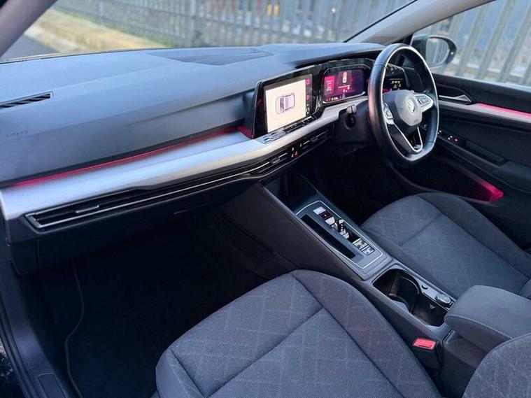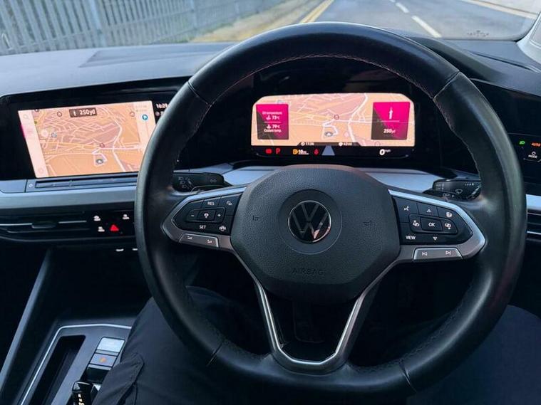 The Golf eTSI Life also comes equipped with Adaptive Cruise Control ACC, which includes a speed limiter and Front Assist, enhancing safety and convenience on longer journeys. Automatic headlight activation, featuring separate LED daytime running lights and manual coming home and automatic leaving functions, ensures optimal visibility in all conditions. This particular model accelerates from 0 to 62mph in a brisk 8.5 seconds, demonstrating a responsive performance that sets it apart from many other vehicles in its class.