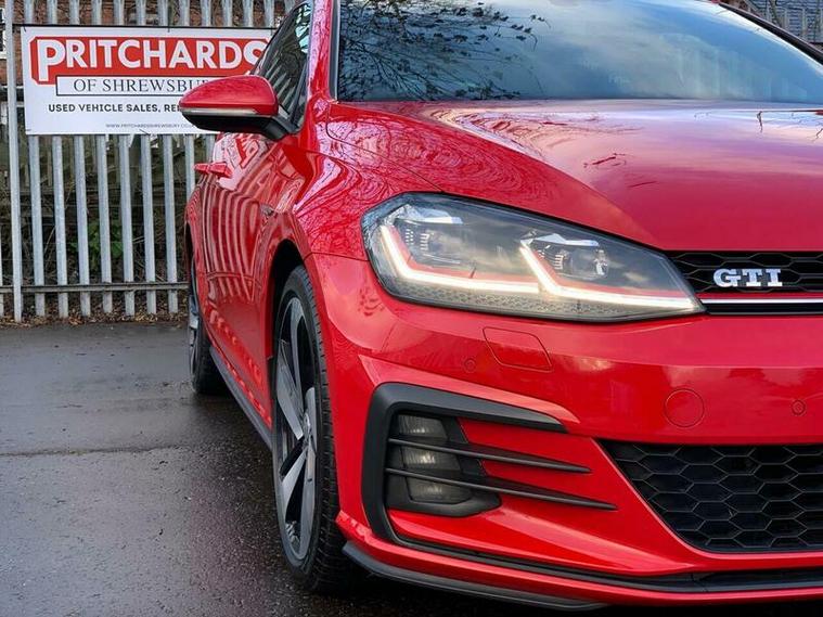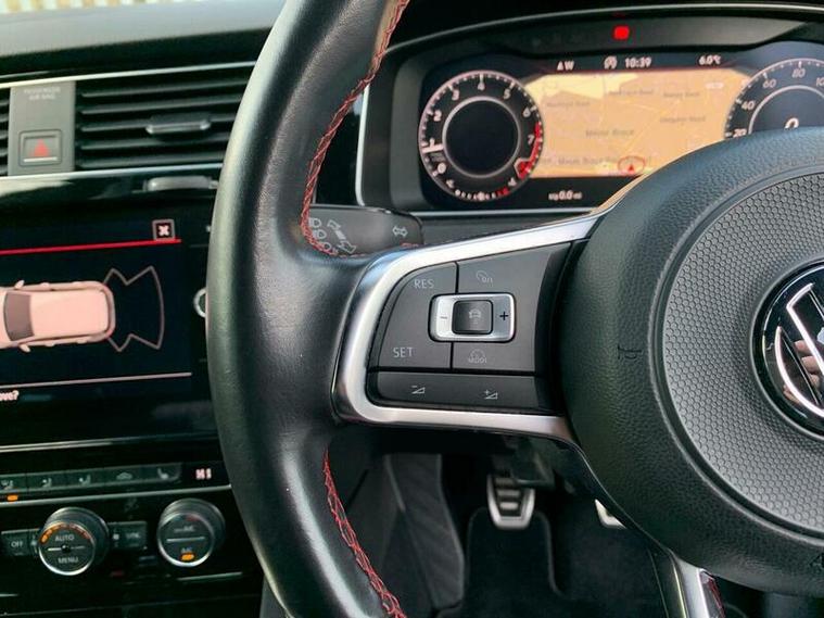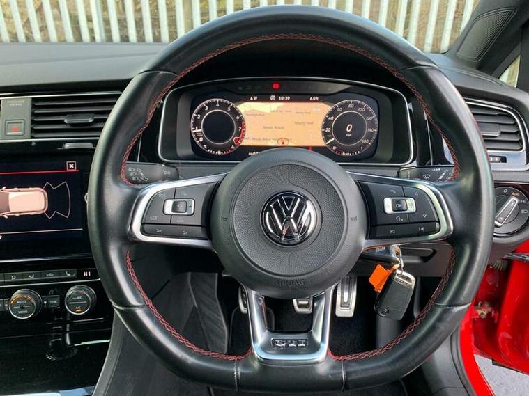 Here is our excellent condition Golf GTI, backed up with a full VW dealer service history. Powered by a responsive 2.0 litre turbocharged petrol engine and meeting Euro 6 emissions standards, this GTI trim model offers a compelling blend of performance and practicality. Inside, you'll find the modern and useful VW intotainment system with Bluetooth connectivity, Sat-nav and more. It also has heated seats and cruise control. The convenience pack includes automatic driving lights activated by a dusk sensor, and LED headlights with dynamic curve light technology. Parking is made effortless thanks to front and rear parking sensors.