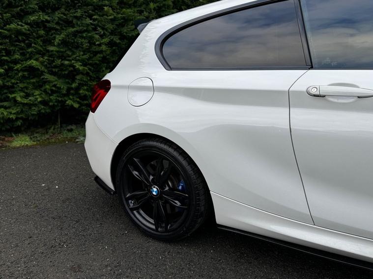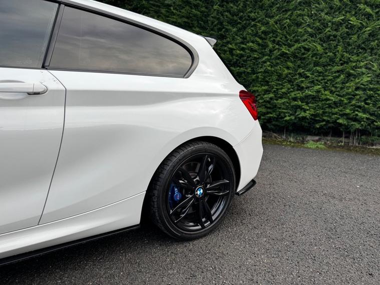 Good specification with this M140i, including: High Gloss Shadowline exterior trim, M Sport package, M Sport adaptive suspension, M Sport aero pack, M Sport brakes, full Maxton design kit, M Performance exhaust tips, automatic rain sensing wipers, auto headlights, 18 inch 436M alloys, Black Dakota heated leather seats, electric bolster control, air conditioning, electric mirrors, LED Xenon headlights, and front and rear parking sensors. Rear split folding seats.