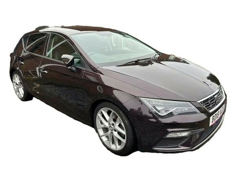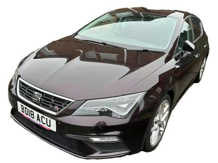 This car comes with 5 seats, Purple, 2 owners, 12V Power Supply in Centre Console, 17in Alloy Wheels - Dynamic 30-2, 7 Airbags, ABS - Anti-Lock Braking System - TCS - Traction Control System, Active Front Head Restraints and 3 Rear Head Restraints, Aluminium Front Door Sill Trims with FR Logo, Body-Coloured Door Handles, Body-Coloured Door Mirrors with Integrated LED Indicators, Boot Storage Net, Bumpers - Exclusive FR Front and Rear, Cargo Rings in the Boot, Cruise Control, Dark Tinted Rear Windows, Driver and Passenger Seat Height Adjustment, Driver and Passenger Sunvisor with Covered and Illuminated Mirrors, Drivers Seat Lumbar Adjustment, Dual Zone Climate Control, ESC - Electronic Stability Control and Tyre Pressure Warning Light Indicator, Electric Parking Brake Including Autohold Function, Electrically Folding Door Mirrors, Electro-Mechanical Power Steering, Electronic Differential Lock System - XDS, Emergency Tyre Repair Kit, Front Assist with City Emergency Braking, Front Seat Back Storage Pockets, Front Sports Seats, Front and Rear Electric Windows, Fuel Filler Flap linked to Central Locking, Full LED Headlights, Gearshift Indicator, Head Restraints - Height Adjustable Front, High Centre Console, High Gloss Black B and C Pillars, Hill Hold Control, ISOFIX Points in Outer Rear Seats with Top Tether Anchorage Points, Illuminated Door Sill Plates, Illuminated Glovebox, Instrument Lighting with Brightness Control, Interior Chrome Detailing, Lights Left On Warning Buzzer, Low Fuel Warning Light, Lower Suspension - 15mm, Media System Plus, Multi Coloured Ambient Lighting, Multi-Collision Braking System, Navigation System, Outside Temperature Gauge, RPM Counter, Radiator Grille Frame in Chrome, Radiator Grille in Black, Reading Lights Front and Rear with Ambient Spots - Boot Lights and Illuminated Foot Area, Rear Parking Sensors, Remote Central Locking with Deadlocks, SEAT Drive Profile, SEAT Full Link Smartphone Integration - Mirror Link - Apple CarPlay - Google Android Auto, Seatbelt Reminder - Front, Seats - Passenger Lumbar Adjustment, Split Folding Rear Seats - 60-40, Sports Suspension, Steering Wheel - Flat-Bottomed Perforated Leather with Red Stitching and FR Logo, Steering Wheel-Mounted Gearshift Paddles, Storage Box Under Drivers Seat, Trip Computer, Two Remote Keys with Window Open-Close - Door Mirror Folding and Boot Opening Functionality, Visual Twin Exhaust Pipes,