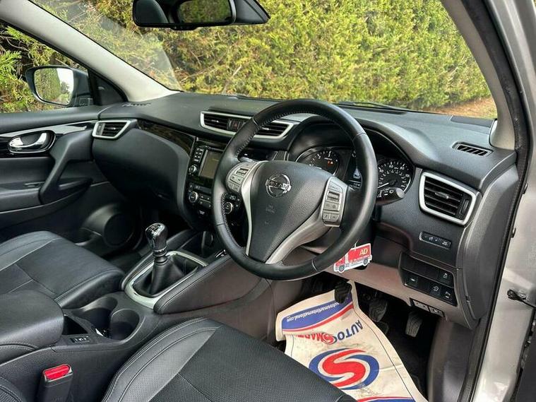 This 2015 Nissan Qashqai dCi Tekna offers excellent peace of mind with a clear vehicle history check. This popular model features a 1.6L diesel engine and comes in the well equipped Tekna trim. Inside, you will find comfortable heated front seats and dual zone climate control for all passengers. Enjoy the open air with the panoramic glass roof, and make parking effortless with the rear parking sensor and the impressive 360 degree Around View Monitor camera system.