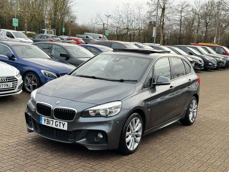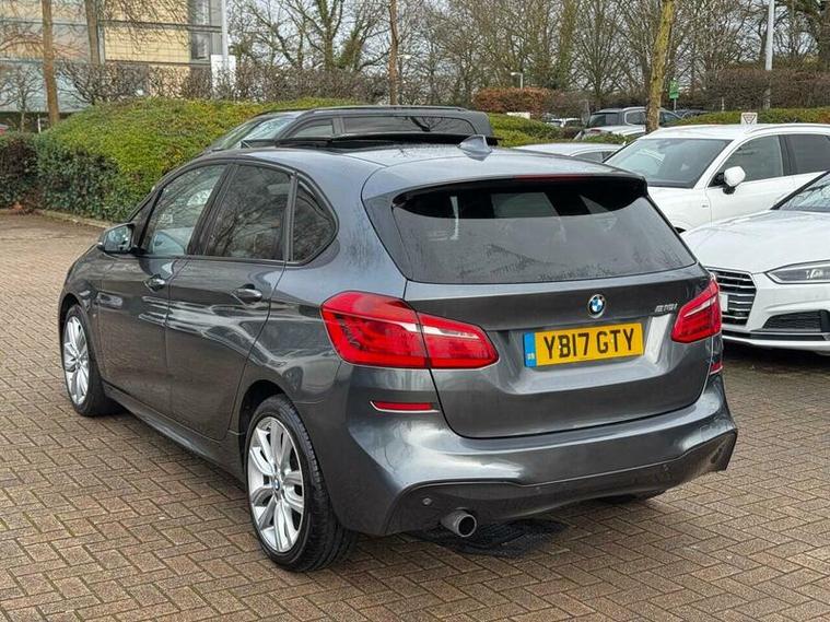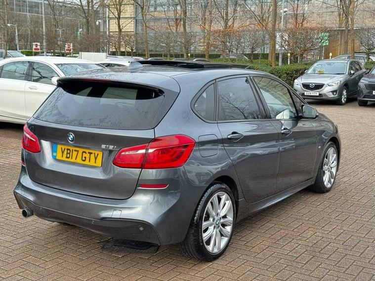 This 2017 BMW 2 Series Active Tourer 218i M Sport boasts a clear vehicle history check, offering peace of mind for its next owner. This Euro 6 compliant, 1.5 litre petrol model comes in the sporty M Sport trim and features a generous panoramic glass sunroof with an opening function, perfect for enjoying the open air. The Driver Comfort Package enhances your driving experience with front parking sensors, while the Rain Sensor automatically activates the headlights, and rear parking sensors are also included for added convenience. Stay connected on the go with the Bluetooth Hands Free system and USB audio interface.