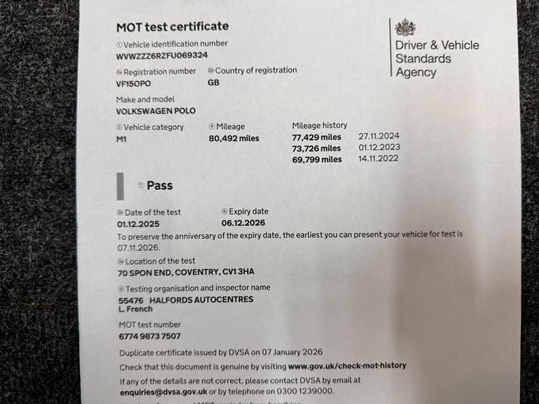 This 2015 Volkswagen Polo SE offers an exceptional blend of efficiency and practicality, making it a smart choice for any driver. Powered by a 1.0 litre Euro 6 compliant petrol engine, this model is designed for economical running. It comes equipped with essential features for modern driving, including Bluetooth phone connectivity for handsfree calls and Bluetooth audio connection to stream your favourite music. For your comfort, it also boasts manual air conditioning, ensuring a pleasant cabin temperature in all conditions., , The Volkswagen Polo SE stands out with its impressive fuel economy, achieving a remarkable 59 miles per gallon. This excellent figure, combined with its low CO2 emissions, indicates that this Polo is more economical to run and better for the environment than many other vehicles in its class. It represents a sensible and cost effective option for those seeking a reliable and well equipped compact car., 3 months warranty, Next MOT due 06/12/2026, Last serviced on 01/12/2025 at 80, 492 miles, Full service history, Cloth interior, 5 seats, Red, 2 owners, 12V Socket - Centre Console, 15in Alloy Wheels - Lyon, ABS - Anti-Lock Braking System, ASR - Anti Slip Regulation, Air Conditioning - Manual, Air Vent Surrounds - Matt Chrome, Airbags - Driver, Airbags - Front Passenger, Airbags - Front Side Head, Airbags - Front Thorax, Alarm with Interior Protection, Anti-Theft Wheel Bolts, Automatic Post-Collision Braking System, Aux-In Socket, Bluetooth Audio Connection, Bluetooth Phone Connectivity, Body Coloured Bumpers, Body Coloured Door Handles, Body Coloured Side Sills, Body-Coloured Door Mirrors with Integrated Indicators, Car Information Display, Carpet - Black, Central Locking - Remote with 2 Remote Keys, Chrome Trimmed Front Air Intake Grille Surround, Colour Touch Screen - 6.5in, Composition Media System, Cup Holders - Front x2, DAB+ - Digital Radio Reception, Dashboard - Titan Black, Daytime Running Lights, Differential Lock - Electronic, Door Mirrors - Electrically Adjustable and Heated, Driver Alert System, Dust and Pollen Filter, ESC - Electronic Stability Control, Electric Windows - Front and Rear, Electronic Engine Immobiliser, Front Seat Back Storage Pockets, Front Windscreen Washers and Wipers with 4 Speeds including Interval Delay, Galvanised Body, Gear Knob - Leather, Gear Lever Gaiter Surround - Matt Chrome, Glovebox, Grab Handles - Front x2 Rear x2 with Coat Hooks, HBA - Hydraulic Brake Assist, Handbrake Grip Button - Matt Chrome, Head Restraints - Front Whiplash Optimised, Headlights - Halogen Clear - Range Adjustable, Heated Rear Windscreen, Height and Reach Adjustable Steering Wheel, High Gloss Black Decorative Inserts, High Level 3rd Brake Light, Hill Hold Assist, ISOFIX Child Seat Preparation for 2 Rear Seats, Instrument Lighting - White Adjustable Panel Illumination, Interior Lighting Delay, Keys - Two Remote Control Folding Keys, Leather Trimmed Handbrake Grip, Lights on Warning Buzzer, Load Sill Protector, Luggage Compartment - Hooks x2, Luggage Compartment - Variable Load Floor, Luggage Compartment Cover - Removable, Luggage Compartment Light, MDI - Multi Device Interface, MP3 Compatible CD Player, Matt Chrome - Internal Door Handles, Multi-function Display, Multifunction Computer, Power Assisted Steering - Speed Sensitive, Radiator Grille - Black with Chrome Louvres, Reading Lights - Front x2, Reading Lights - Rear, SD Card Reader, SMS Functionality - Read - Compose and Send SMS Messages Using Touch Screen Display - Android Compatible Smartphones Only, Seats - Front Comfort, Seats - Height Adjustment - Front, Simultaneous Pairing of 2 Compatible Mobile Devices, Sound Output - 4x20 Watt, Spare Wheel - 15in Steel, Speakers x8, Split Folding Rear Backrests 60-40, Steering Wheel - 3-Spoke - Leather Trimmed, Steering Wheel - Multifunction, Storage Compartment in Centre Console, Storage Compartment in Front Doors, Storage Compartment in Rear Doors, Sun Visors - Vanity Mirrors and Illuminated x2, Sunglasses Holder, Think Blue - Trainer - Driver Tips - Journey Analysis, Three Rear Head Restraints, Tinted Glass - Heat Insulating Green, Title and Cover Art Display, Tyre Pressure Loss Indicator, USB Socket, Warning Buzzer and Light for Front Seat Belts if Unfastened, AS WE ARE AN AA CARS DEALER THIS VEHICLE COMES WITH 12 MONTHS AA BREAKDOWN COVER.