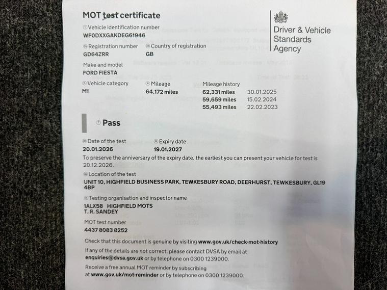 ABSOLUTE CARS have this 5 Door Ford Fiesta 1.0T EcoBoost Zetec Euro 5 (s/s) in Metallic Silver with Alloys. An Ideal First Car + only £20 a Year tax ! call in for a test drive, finance arranged & part exchange considered., 3 months warranty, Next MOT due 19/01/2027, Last serviced at 62, 330 miles, Full service history, Grey Cloth interior, 5 seats, Metallic Silver, 3 owners, Upgrades - Spare Wheel - 14in Steel, Standard Features - 12V Power Socket - Front, 15in Alloy Wheels - 5x2 Spoke, ABS - Anti-lock Braking System, Aesthetic Lighting Package, Air Conditioning - Manual, Airbags - Curtain, Airbags - Driver Side Knee, Airbags - Front Passenger, Airbags - Head and Thorax, Airbags - Passenger Deactivation, Body Colour Exterior Mirrors, Brake Warning Lights - Automatic Flashing of Brake Lights Under Heavy Braking, Bumpers - Front and Rear - Body Colour, Centre Console - with Trinket Tray - Two Cup Holders, Chrome Belt Line Finisher, Courtesy Light - Overhead with Theatre-Style Dimming, Courtesy Lights with Map Reading Lights, DDS - Deflation Detection System, Daytime Running Lamps, Door Handles - Body Colour, Door Mirrors - Electrically Operated and Heated, Drivers Airbag, EBA - Emergency Brake Assist, EBD - Electronic Brakeforce Distribution, ECOmode, EPAS - Electric Power Assisted Steering, ESP - Electronic Stability Programme, Electric Windows - Front with One Touch Lowering Drivers, Emergency Assistance, Emergency Brake Warning - Automatic Hazard Warning Lights, Engine Immobiliser, Flow Through Centre Console, Ford AM-FM CD Audio System, Ford Easy Fuel Capless Refuelling System with Misfuel Inhibitor, Ford SYNC, Front Fog Lights - Chrome Bezel Rings, Front Lower Grille Insert and Surround - Black, Front Seatback Map Pockets - Driver and Passenger, Front Upper Grille - Chrome Finish Surround, Front Upper Grille Insert - Chrome bars, Gear Knob - Leather, Gearshift Indicator Light, Gearshift Knob - Leather-Trimmed with Chrome Finish Bezel, Glovebox - Illuminated, Head Restraints - 2-way Adjustment, Head Restraints - Rear 2-Way Adjustment, Headlights - Courtesy Delay, Headlights - Follow Me Home, Headlights - Halogen Projector with Silver Bezel, Headliner - Woven, Heated Front Windscreen, High-Mounted Rear Brake Light, Hill Start Assist, IPS - Intelligent Protection System, Interior Door Lever - Chrome Finish, LED Ambient Courtesy Lighting, Leather-Trimmed Handbrake, Loadspace Compartment Light, Loadspace Floor Carpet, Locking Wheel Nuts, MyKey, Pollen Filter, Rake and Reach Steering Adjustable, Rear Courtesy Lights, Rear Spoiler - Body Colour, Remote Central Locking, Removable Package Tray, Seats - 60-40 Split Folding Back and Fixed Cushion, Seats - Drivers 4-Way Adjustment, Seats - Front Comfort Style, Seats - ISOFIX Mounting Brackets for Child Seats, Speakers - x6, Steering Wheel - 3-Spoke - Leather Trimmed with Bezel, Steering Wheel - Multifunction, Stowage Pockets - Driver and Front Passenger Seatbacks, Tailgate Handle - Body Colour with Chrome Finisher, Tinted Glass, Trip Computer, USB and AUX Connection for External Music Devices, Voice Control - Audio, AS WE ARE AN AA CARS DEALER THIS VEHICLE COMES WITH 12 MONTHS AA BREAKDOWN COVER.
