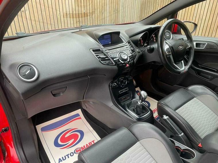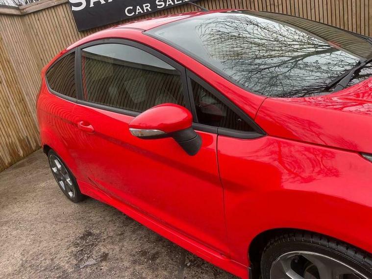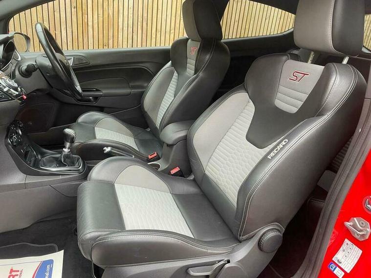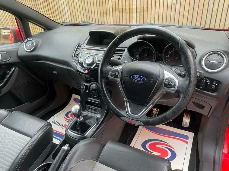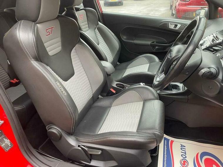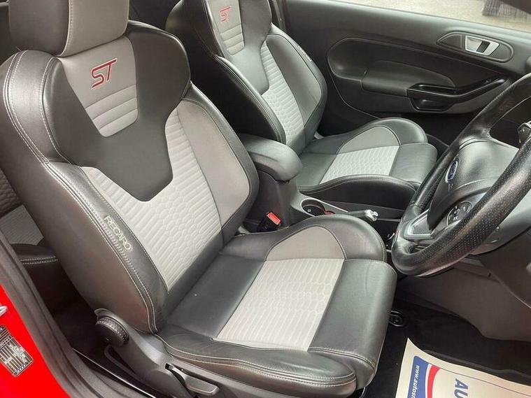 STUNNING Ford Fiesta 1.6T EcoBoost ST-3 Euro 5 (s/s) 3dr finished in metallic red with excellent black and white part leather interior. MOT due 27/01/2027 with no advisories . GREAT service history (7 stamps) and freshly serviced at 107808 miles. Additionally this vehicle comes with a new timing belt at 95527 miles in 2024. Our Company does not receive any commission from the sale of our vehicles. Excellent specification including;