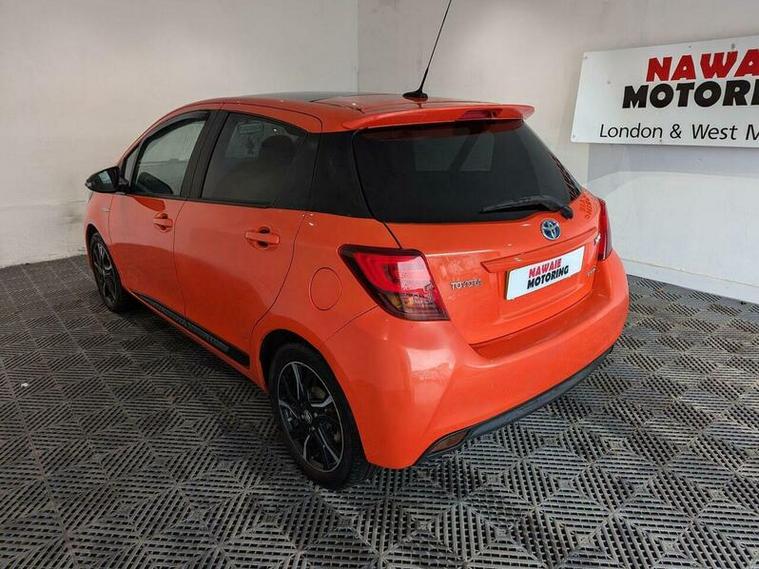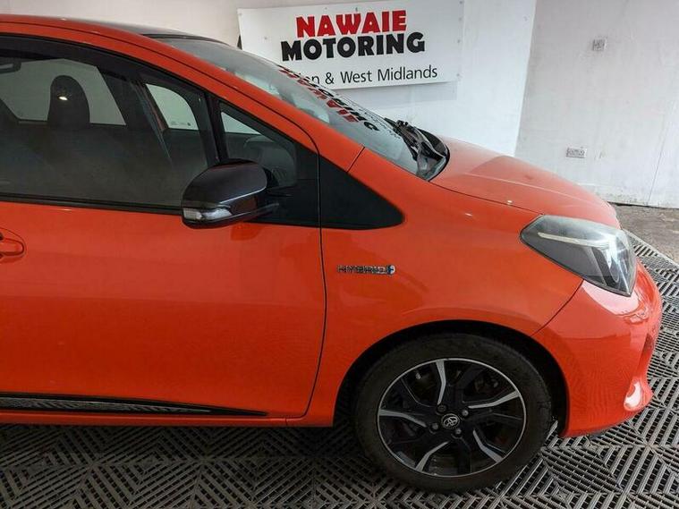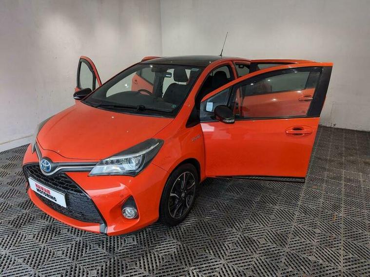 Discover this 2016 Toyota Yaris VVT-h Orange Edition, a well presented example that offers an exceptional driving experience. This model boasts a 1.5 litre petrol hybrid engine, ensuring a smooth and efficient journey. As a Euro 6 compliant vehicle, it meets modern environmental standards. Inside, you'll appreciate the convenience of dual zone automatic air conditioning, perfect for maintaining your preferred cabin temperature. The Skyview panoramic roof floods the interior with light, creating an airy and pleasant atmosphere. For added ease, it comes equipped with a reversing camera and parking assistance, making manoeuvring simple. Stay connected on the go with integrated Bluetooth connectivity.