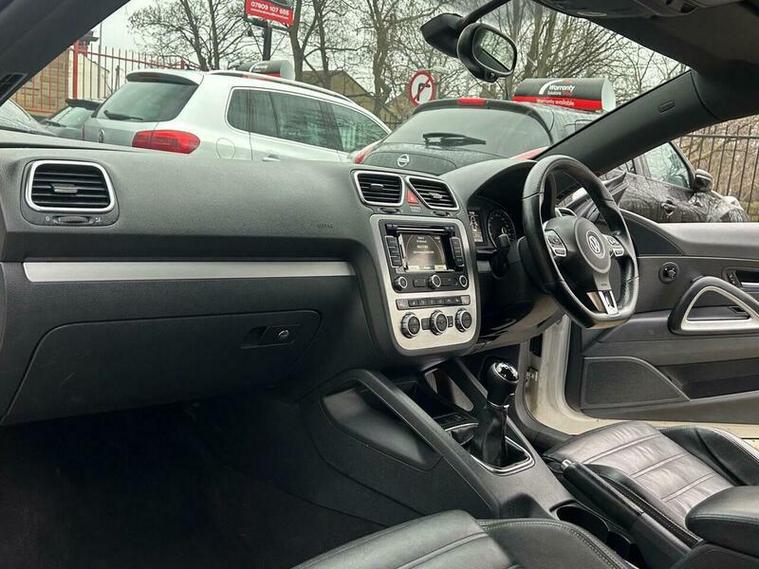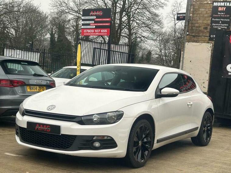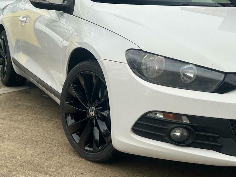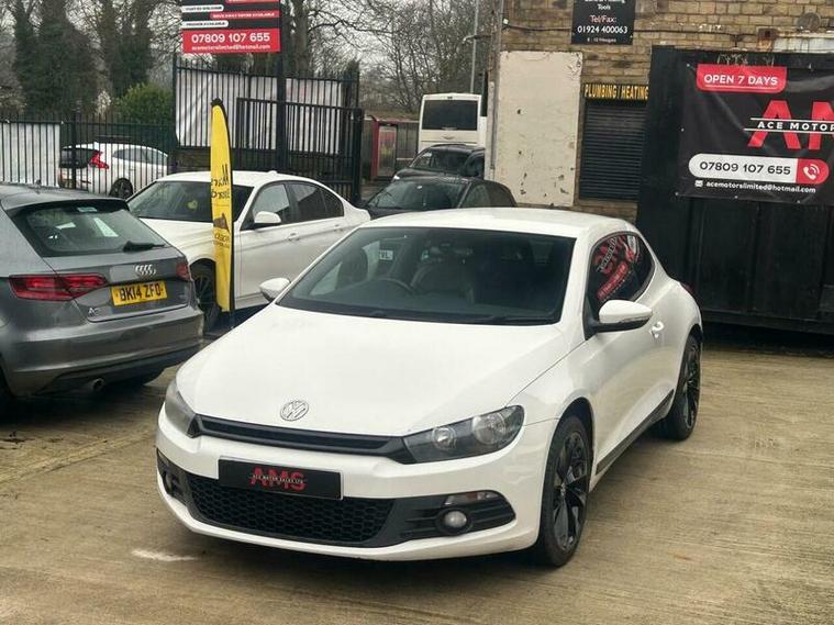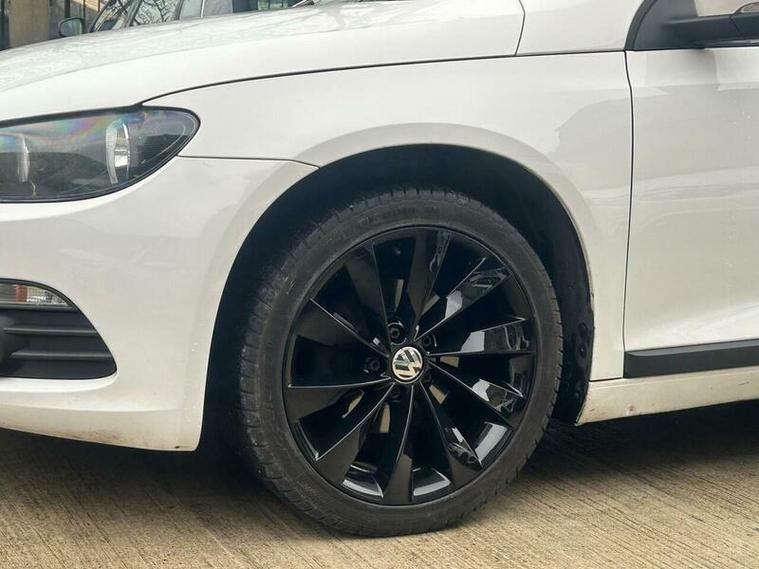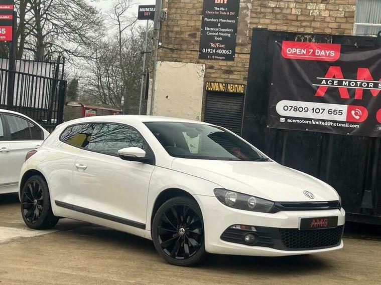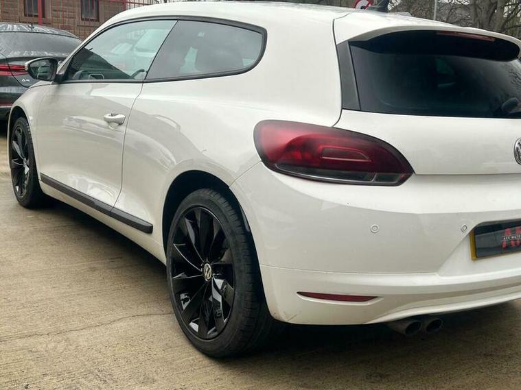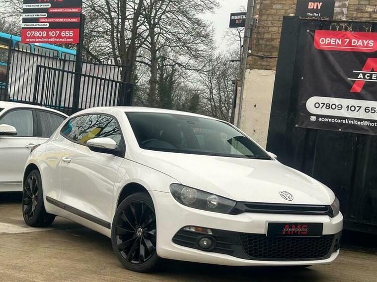 For sale at Ace Motor Sales we have this fantastic example of the very stylish VW Scirocco finished in metallic white and accompanied by the turbine GT alloy wheels. This example is very highly maintained and has been serviced regularly throughout its lifetime. This vehicle offers a very stylish appearance, amazing running costs, and outstanding performance. Pulls and performs like a dream through all 6 gears. Excellent practicality, comfortability and performance. Don?t miss out on this one! HPI Clear. Brilliant tyres all round. Service History. X2 Keys!! Freshly powder coated gloss black alloys!
