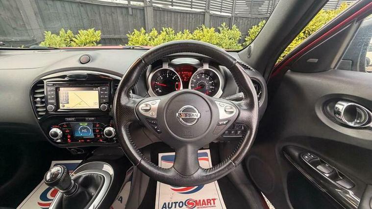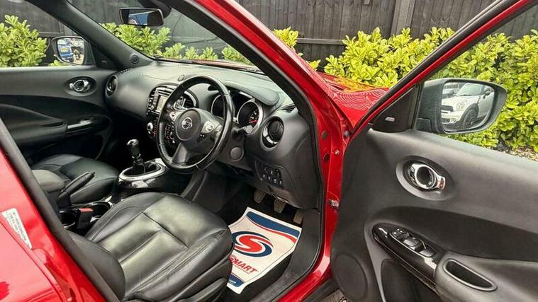 Inside, the Tekna specification offers a premium and well-equipped cabin. The interior features leather upholstery, a touchscreen infotainment system with satellite navigation, Bluetooth connectivity, and a high-quality sound system. Heated seats, climate control, cruise control, and a reversing camera further enhance comfort and convenience, making every journey enjoyable. The cabin feels modern and well finished, with supportive seating and intuitive controls. Despite its compact size, the Juke offers good passenger space and a practical boot for everyday use.