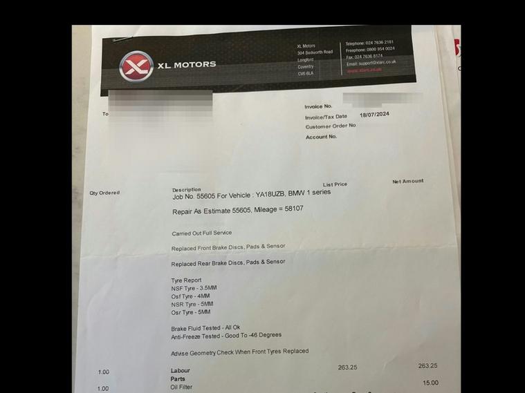 This car comes with 5 seats, Black, 4 owners, Upgrades - PDC - Park Distance Control - Front and Rear, Interior Comfort Package, Seat Heating for Driver and Front Passenger, Sun Protection Glazing, Automatically Dimming Rear View Mirror, Interior Trim - High-Gloss Black with Pearl Chrome Finisher, Sport Leather Steering Wheel - Black Stitching, Dakota Leather - Black with Black Interior, Standard Features - 12V Power Socket - Centre Console, 12V Power Socket - Passenger Footwell, 17in Alloy Wheels - Light Double Spoke Star - 655, Active Differential Brake - ADB Sport - Electronic Differential Lock in DSC-Off Mode, Air Conditioning - Automatic - Single Zone, Airbags, Alarm System - Thatcham 1 with Remote Control and Engine Immobiliser, Ambient Lighting - Switchable BMW Classic Orange - Cold White - LED, Armrest - Front with Sliding Adjustment, BMW ConnectedDrive Online Services, BMW ConnectedDrive Services, BMW Emergency Call, BMW Navigation System, BMW Professional Radio - Single CD and MP3, BMW TeleServices, Battery Age Recognition Function, Battery Safety Cut Off, Bluetooth Hands Free with USB Audio Interface, Brake Pad Wear Indicator - Front and Rear, Bumper - Rear with High Gloss Black Finisher, Bumper System Front and Rear - Replaceable Deformation Elements for Impacts Up to 9mph, Central Locking Switch - Doors - Fuel Filler Cap - Luggage Compartment, Check Control Warning System for Monitoring of Lights and Door-Luggage Compartment Open Warning, Child Proof Locking System - Rear Doors, Child Seat ISOFIX Attachment for the Two Outer Rear Seats, Condition Based Service, Crash Sensor - Activating Central Locking Release - Hazard Warning Lights - Battery Safety Cut Off - Interior Lighting, Cupholders Two with Sliding Cover and Inlay Mat, DAB Digital Radio, DSC - Dynamic Stability Control Plus, Daytime Driving Lights, Direction Indicator - Side Repeaters - Integrated in Exterior Mirrors, Direction Indicator Lights - Clear Lenses, Door Sill Finishers - BMW Designation - Front, Drive Performance Control - ECO PRO - Comfort - Sport - Sport Plus Modes, Dynamic Brake Lights, ECO PRO Mode, Electric Windows - Front and Rear with Open-Close Fingertip Control - Anti-Trap Facility and Comfort Closing Function, Exhaust Tailpipe - Chrome - Dual - Round - Left, Extended Storage, Exterior Mirrors Electrically Adjustable, Exterior Parts in Body Colour, First Aid Kit and Warning Triangle, Floor Mats - Velour, Front Air Inlet with High-Gloss Black Finisher, Front Fog Lights, Glove Compartment, Glovebox - Handle with Chrome Surround, Grab Handles - Integrated in Roof Linings - Four, Halogen Headlights, Handbrake and Gear Knob - Leather, Head Restraints - Rear and Folding, Heat Protection Glazing with Green Tint, High Level Third Brake Light, Incorrect Fuelling Protection System, Instrument Cluster - Sports with Red Highlight, Interior Lighting - Front Centre Over Interior Mirror and Rear Centre, Interior Trim - High-Gloss Black with Coral Red Finisher, Kidney Grille - Extra Wide High Gloss Black Vertical Slats, Lashing Eyes in Luggage Compartment at Sill x2, Lights-On Warning by Audio Warning Signal When Ignition is Switched Off, Locking Wheel Bolts, Luggage Compartment - Light, Luggage Compartment Access via BMW Roundel, Model Designation, Multifunction Controls for Steering Wheel, Non Smokers Package, OBC - On-Board Computer, Oil Temperature Display via On-Board Computer Shown in Central Screen in Instrument Cluster, Optimum Shift Indicator, Personal Profile, Power Steering - Electric, Rain Sensor with Automatic Headlight Activation, Real Time Traffic Information, Rear Fog Light - Offside, Rear Seat Headrests - Outer Headrests Folding, Rear Window Aerial, Remote Control Including Integrated Key - 2, Remote Control with Integrated Key with Insert in Red, Reversing Light in Rear Cluster - Nearside, Run Flat Tyres, Seat Belt Security Check for Driver and Front Passenger, Seats - 60-40 Split Folding Rear, Servotronic Steering, Shark Fin, Side Armrests - Front and Rear Integrated into Door Trim, Side Impact Protection, Speed Limit Function, Sport Multi-Function Leather Steering Wheel - Red Stitching, Sport Seats - Front, Start-Stop Button with Comfort Go Keyless Engine Start and Auto Start-Stop Deactivation Button, Steering-Wheel Column Adjustment - Manual, Storage Compartment - Rear Centre Console and in Door Trim - Front, Sun Visors with Vanity Mirrors and Ticket Holder, TPMS - Tyre Pressure Monitoring System, Three-Point Seat Belts - All Seats, Twin Horns, Tyres - Reduced Rolling Resistance, Visible VIN, Welcome Lighting - LED, Windscreen Wiper - Rear,