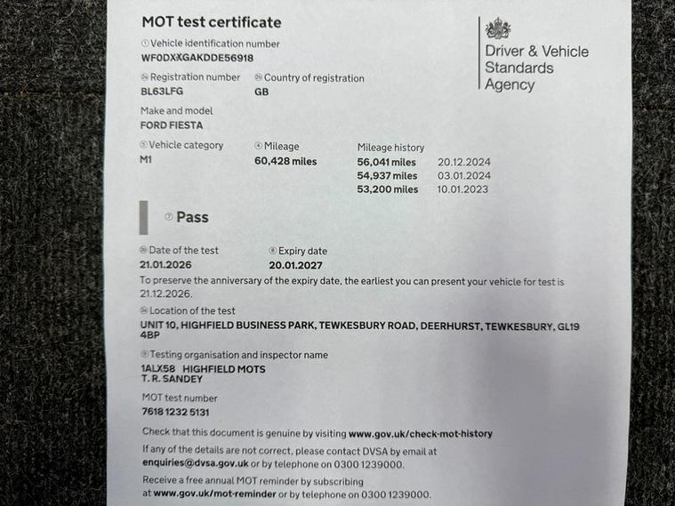 ABSOLUTE CARS have this 5 Door Ford Fiesta 1.0 Zetec Euro 5 (s/s) in Metallic Silver with Alloys. An Ideal First Car + Only £20 a Year Tax ! Call in for a test drive, finance arranged & part exchange considered., 3 months warranty, Next MOT due 20/01/2027, Last serviced on 21/01/2026 at 60, 428 miles, Part service history, Grey Cloth interior, 5 seats, Metallic Silver, 3 owners, Upgrades - 16in Alloy Wheels - 7 Spoke, Dress Up Kit - Full, Lithos Cloth - Charcoal Black, Standard Features - 12V Power Socket - Front, 15in Alloy Wheels - 5x2 Spoke, ABS - Anti-lock Braking System, Aesthetic Lighting Package, Air Conditioning - Manual, Airbags - Curtain, Airbags - Driver Side Knee, Airbags - Front Passenger, Airbags - Head and Thorax, Airbags - Passenger Deactivation, Brake Warning Lights - Automatic Flashing of Brake Lights Under Heavy Braking, Bumpers - Front and Rear - Body Colour, Centre Console - with Trinket Tray - Two Cup Holders, Chrome Belt Line Finisher, Courtesy Light - Overhead with Theatre-Style Dimming, Courtesy Lights with Map Reading Lights, Door Handles - Body Colour, Door Mirrors - Electrically Operated and Heated, Drivers Airbag, EBA - Emergency Brake Assist, EBD - Electronic Brakeforce Distribution, ECOmode, EPAS - Electric Power Assisted Steering, ESP - Electronic Stability Programme, Electric Windows - Front with One Touch Lowering Drivers, Emergency Brake Warning - Automatic Hazard Warning Lights, Ford AM-FM CD Audio System, Ford Easy Fuel Capless Refuelling System with Misfuel Inhibitor, Front Fog Lights - Chrome Bezel Rings, Front Lower Grille Insert and Surround - Black, Front Seatback Map Pockets - Driver and Passenger, Front Upper Grille - Chrome Finish Surround, Front Upper Grille Insert - Chrome bars, Gear Knob - Leather, Gearshift Indicator Light, Gearshift Knob - Leather-Trimmed with Chrome Finish Bezel, Glovebox - Illuminated, Handbrake Release Knob - Chrome, Head Restraints - 2-way Adjustment, Head Restraints - Rear 2-Way Adjustment, Headlights - Courtesy Delay, Headlights - Follow Me Home, Headlights - Halogen Projector with Silver Bezel, Headliner - Woven, Heated Front Windscreen, High-Mounted Rear Brake Light, Hill Start Assist, IPS - Intelligent Protection System, Interior Door Lever - Chrome Finish, LED Ambient Courtesy Lighting, Leather-Trimmed Handbrake, Loadspace Compartment Light, Loadspace Floor Carpet, Locking Wheel Nuts, MyKey, Passenger Airbag Deactivation Indicator, Passengers seat manual 2-way adjustment, Pollen Filter, Rake and Reach Steering Adjustable, Rear Courtesy Lights, Rear Seats Back - Carpet, Rear Spoiler - Body Colour, Remote Central Locking, Removable Package Tray, Seats - 60-40 Split Folding Back and Fixed Cushion, Seats - Drivers 4-Way Adjustment, Seats - Front Comfort Style, Seats - ISOFIX Mounting Brackets for Child Seats, Second Remote Ignition Key, Steering Wheel - 3-Spoke - Leather Trimmed with Bezel, Steering Wheel - Multifunction, Stowage Pockets - Driver and Front Passenger Seatbacks, Suspension - Front Stabiliser Bar, Tailgate Handle - Body Colour with Chrome Finisher, Trip Computer, Tyre Inflator Kit, USB and AUX Connection for External Music Devices, AS WE ARE AN AA CARS DEALER THIS VEHICLE COMES WITH 12 MONTHS AA BREAKDOWN COVER.